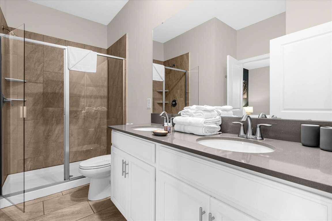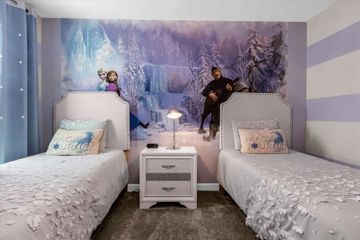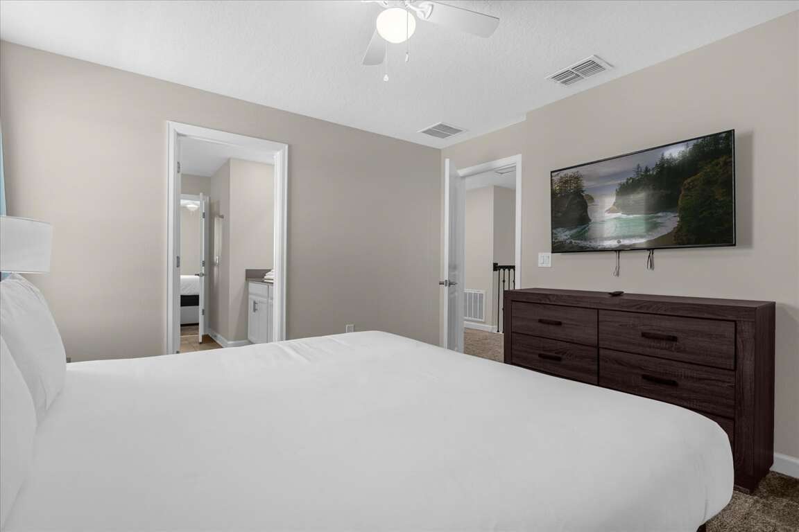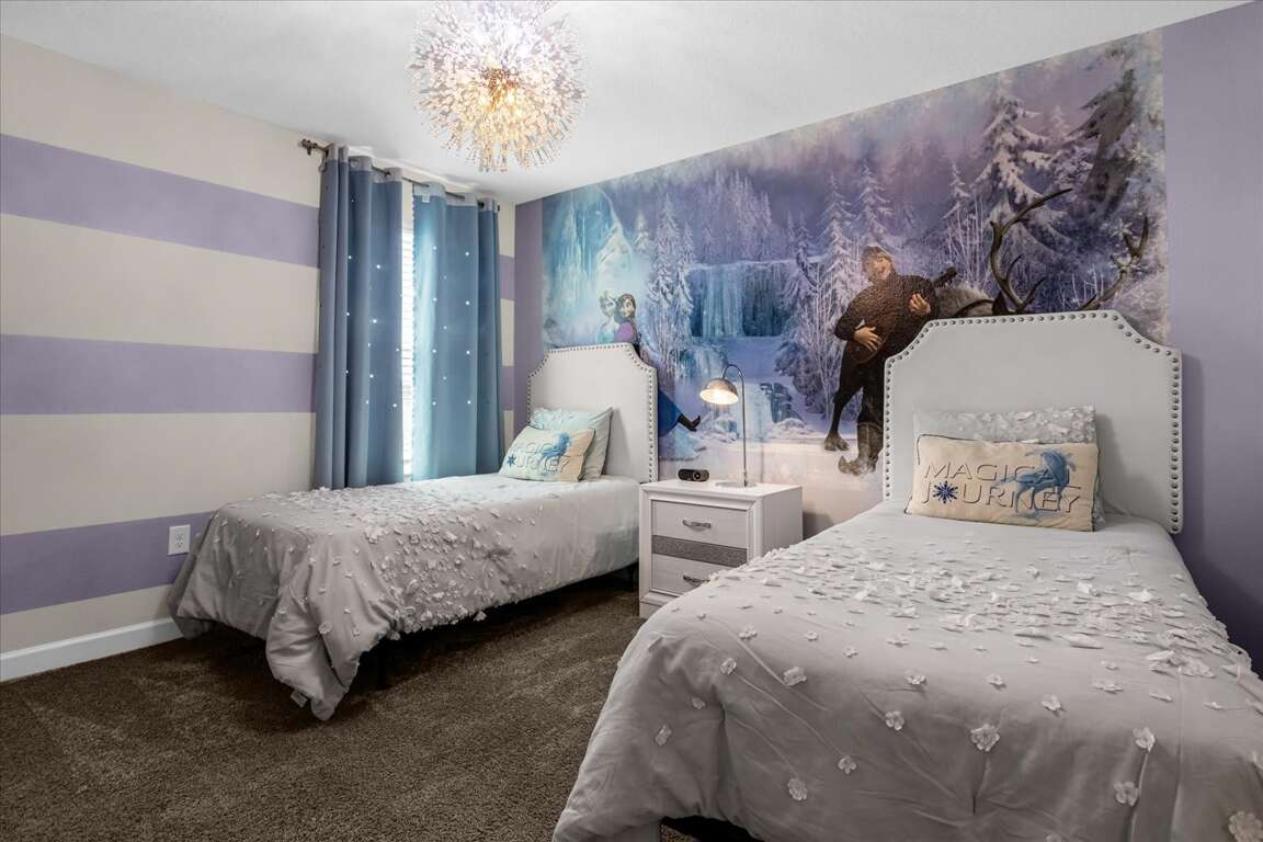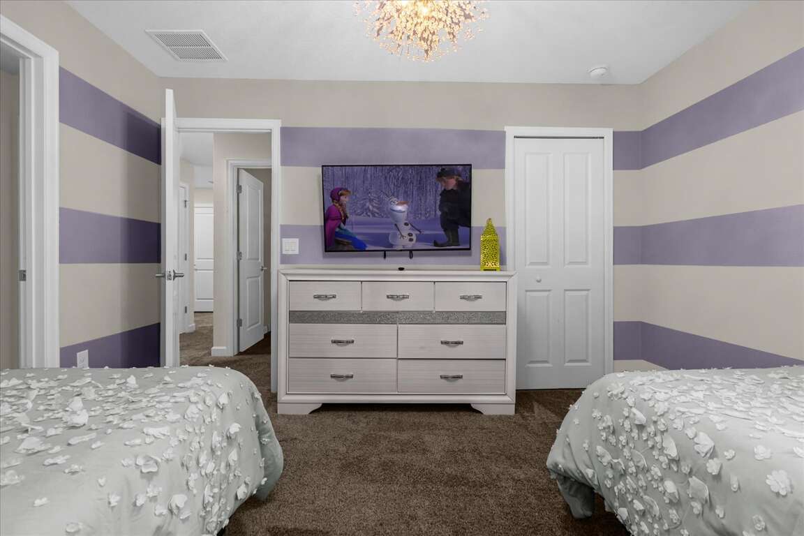 This thoughtfully designed home features five king bedrooms, ideal for couples and adults seeking comfort and space. Younger guests will love the twin-over-twin princess bedroom, while the space-themed bunk room with two bunk beds (twin over full) creates an exciting sleep and play zone for kids and teens.