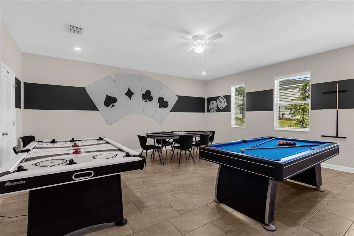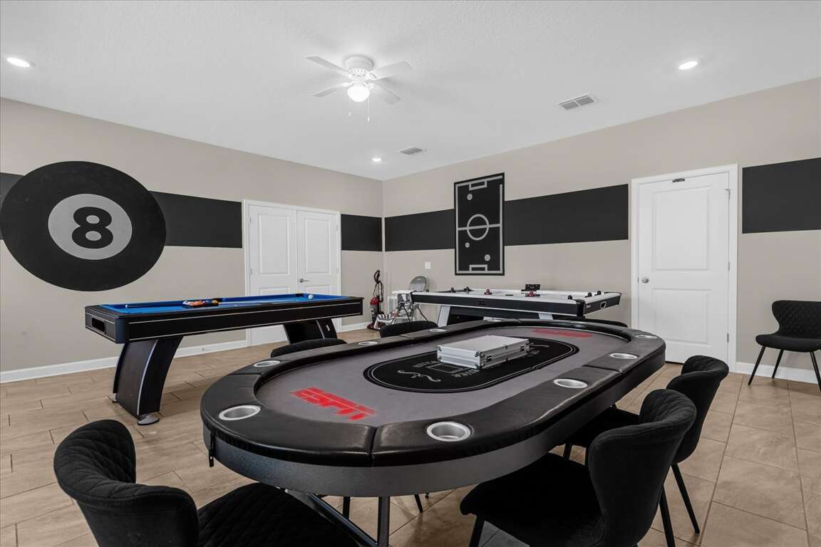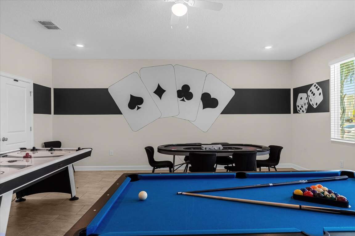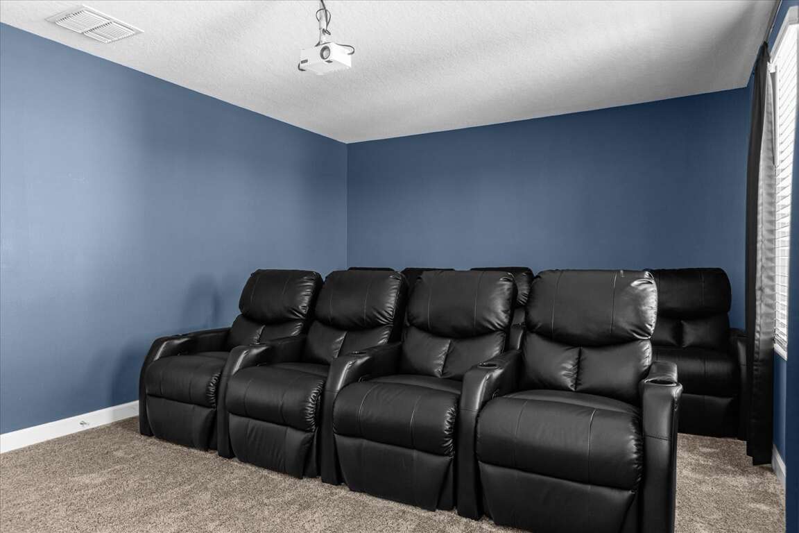 Fun starts the moment you walk in. The game room is ready for friendly competition with a pool table, air hockey, and poker table, while the upstairs loft provides a second living and entertainment area — perfect for relaxing, gaming, or hanging out. Movie nights become an event in the dedicated second-floor movie theater, giving everyone a front-row seat after a full day of adventure.
