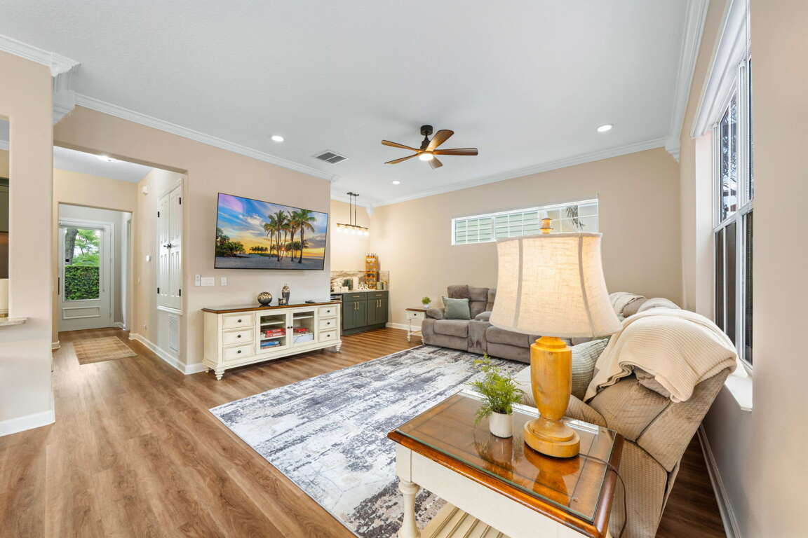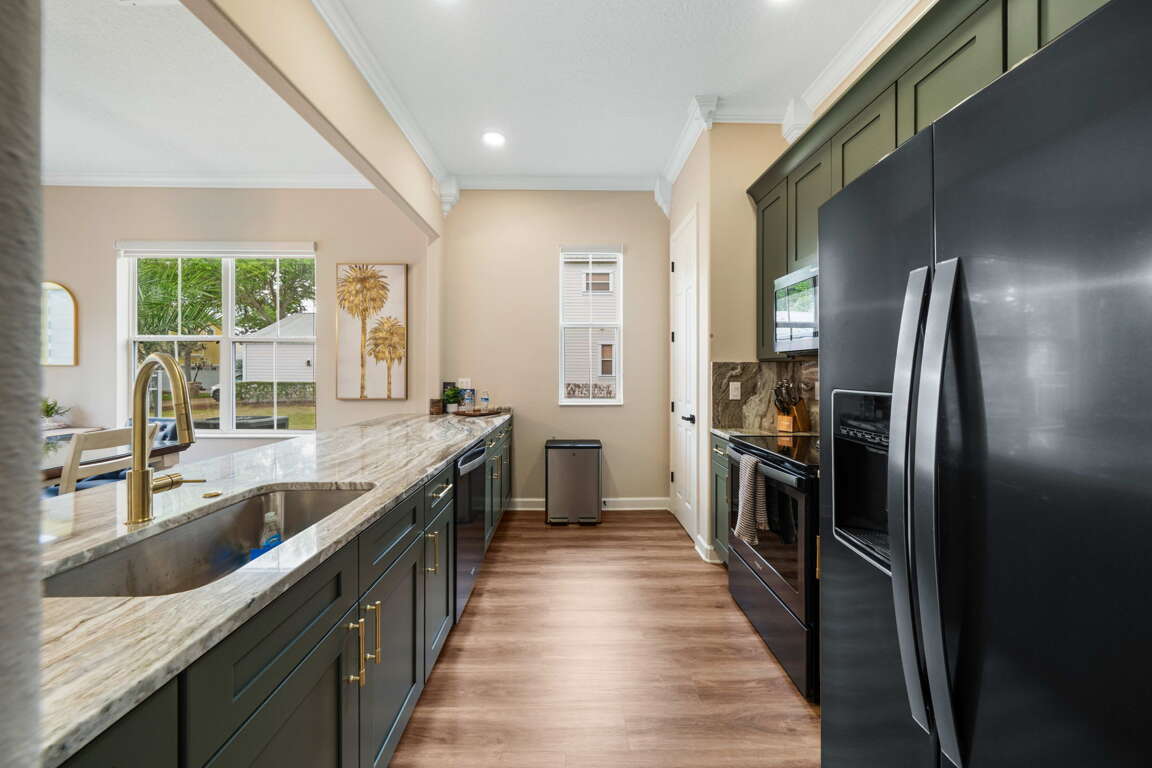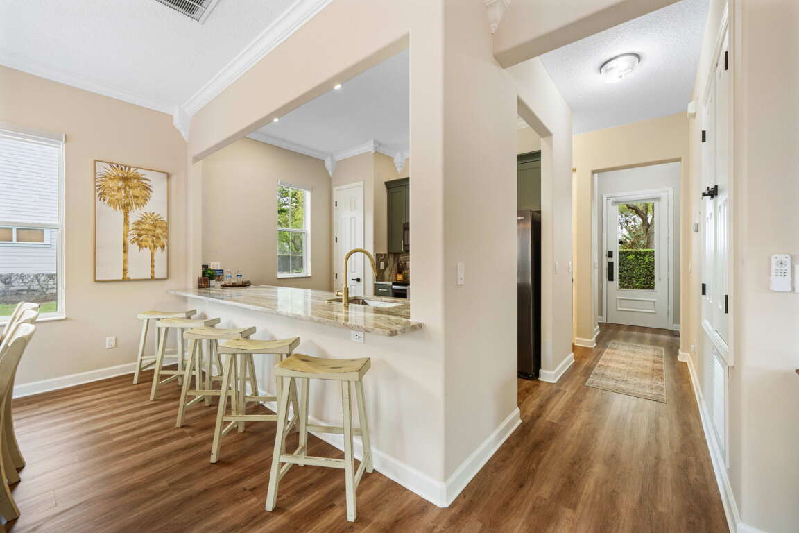 From the moment you step inside, the home’s fresh, high-end redesign sets the tone. Thoughtfully curated finishes, modern touches, and a bright, open layout create a space that feels both refined and welcoming. The main living area flows seamlessly between the kitchen, dining, and living spaces—perfect for gathering after a day at the parks or enjoying relaxed evenings together.