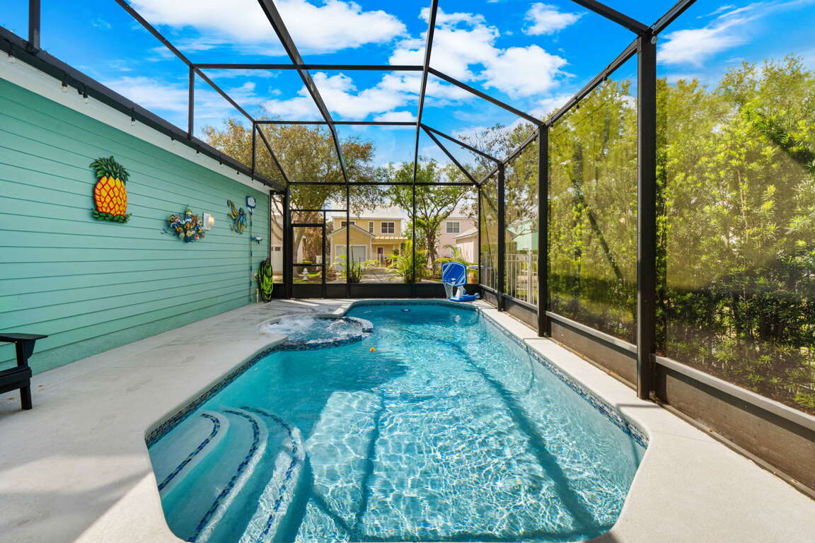 Step outside to your private screened-in pool and spa, where you can cool off in the Florida sun or relax after a full day of adventure. The outdoor space is designed for easy enjoyment, with plenty of room to lounge and unwind in a peaceful setting. For added comfort during cooler months, pool heat is available for $30 per night and can be arranged by our team prior to your stay.