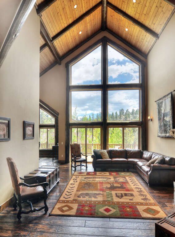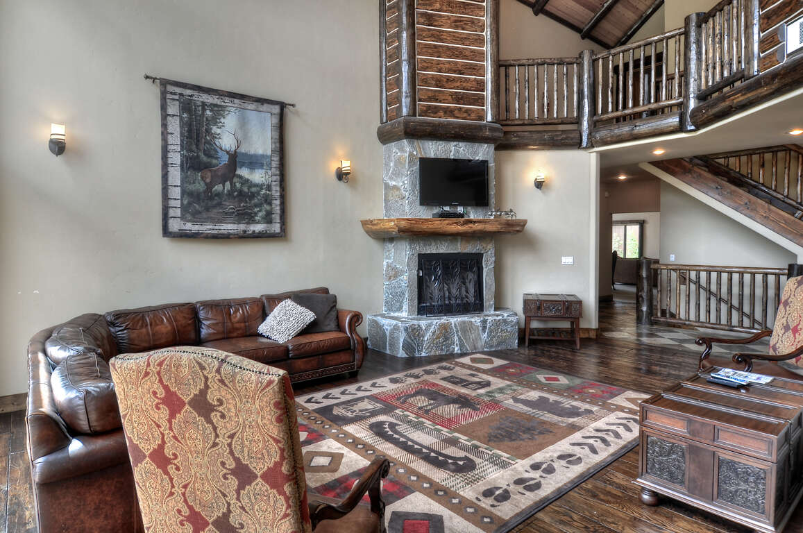 Boasting lake and mountain views, this recently completed 6700 square foot estate offers supreme mountain living for your family gatherings. Upon entering the estate you will be be impressed with the soaring 35 foot ceilings and huge floor to ceiling fireplace.