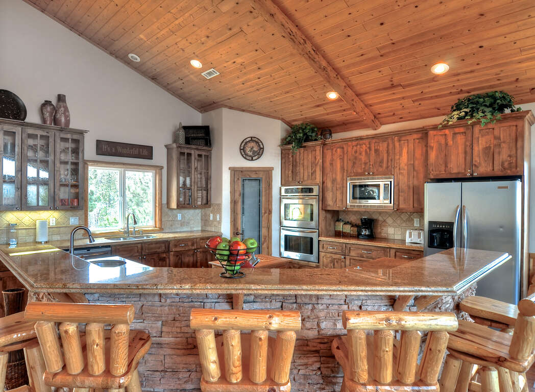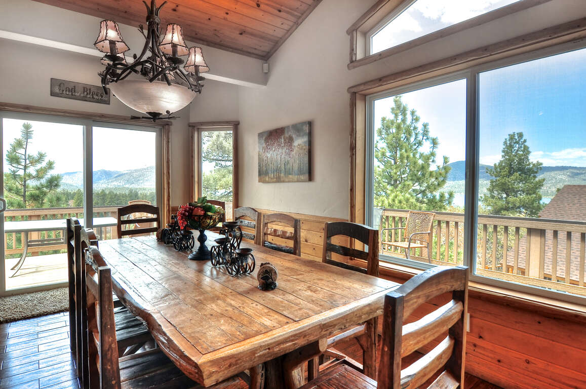 This gorgeous estate is perfectly laid out for multiple family use. There is lots of space and much privacy. This home is adjacent to the National Forest and is a winter wonderland with a large private sledding hill for snow play. Watch the kids sled in the snow from any of the large decks. Summer and Spring hiking, mountain biking and wild life viewing in right in your backyard. Ski High Estate also offers, RV parking with hook ups, Boat parking on a large paved parking pad, 4 car garage, and a short walk to village and lake. This estate offers unmatched privacy and spectacular views. Max occupancy 14 adults + 2 kids for 16 in total.