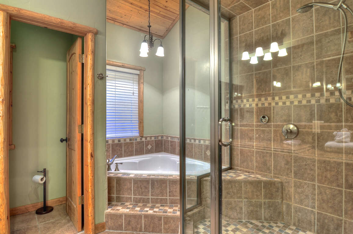 Bedroom #1 (Master): King Bed, view deck, walk in closet, TV, DVD, Stereo, Gas fireplace, jetted tub, steam room in shower.