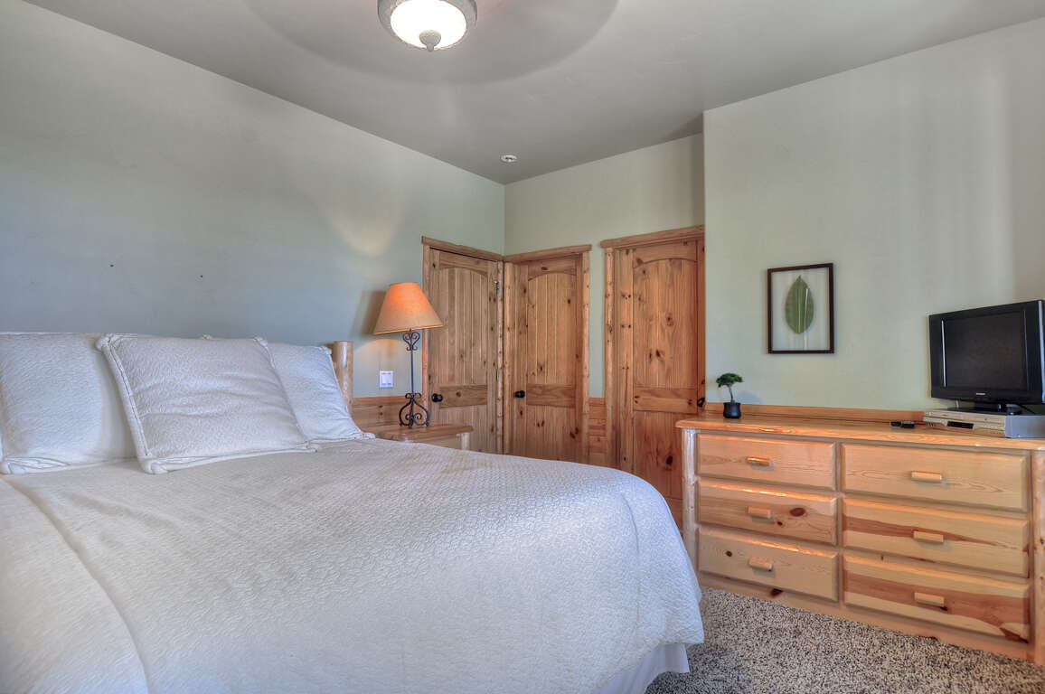Bedroom #3: Queen Bed, TV, view deck, large closet.