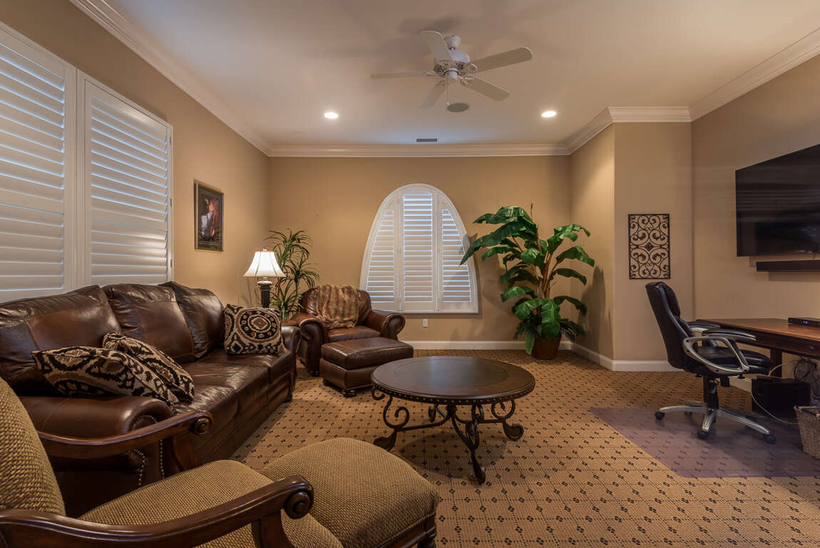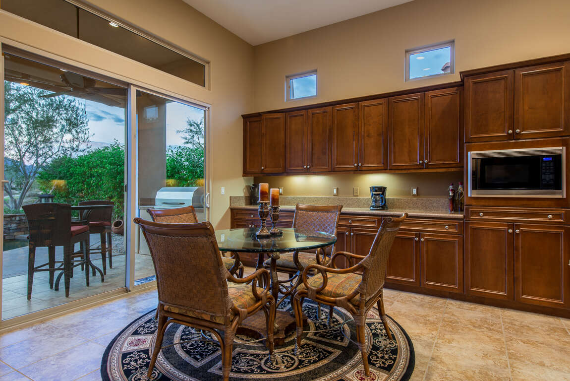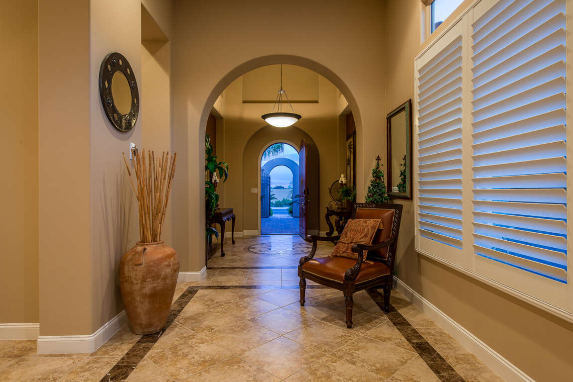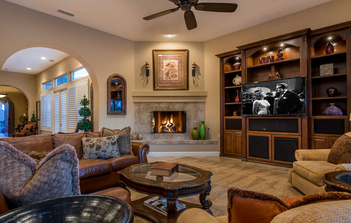 The hideaway offers four bedrooms (including a well-appointed two room casita), four full bathrooms plus one half bathroom, and comfortably accommodates up to ten guests.Step inside the grand hallway framed by disappearing glass, and your eyes are immediately drawn to the beautiful mountain and golf course views. Normanโs Hideaway boasts an open floor plan, making the home perfect for entertaining or relaxing with family and friends. The custom fireplace is warm and inviting, and the expansive bank of windows gives the space great views of the gorgeous Santa Rosa Mountains.