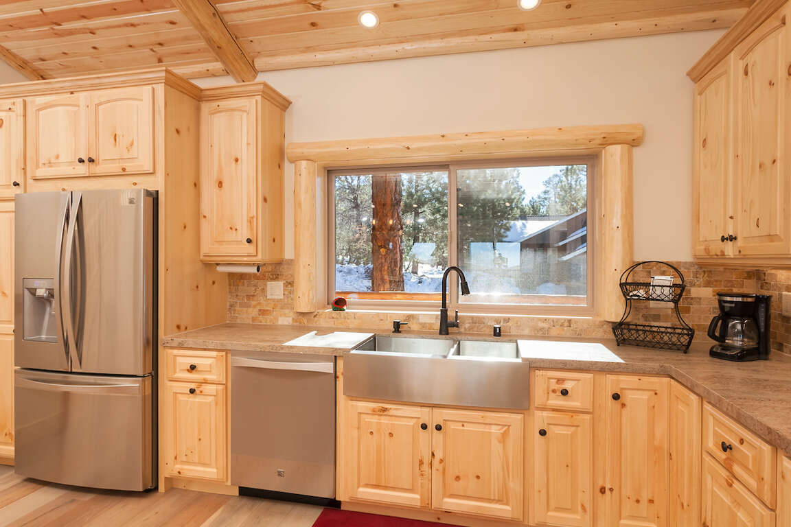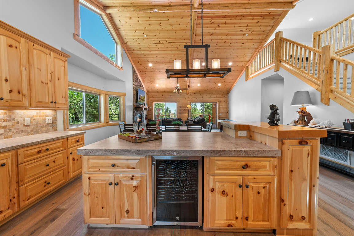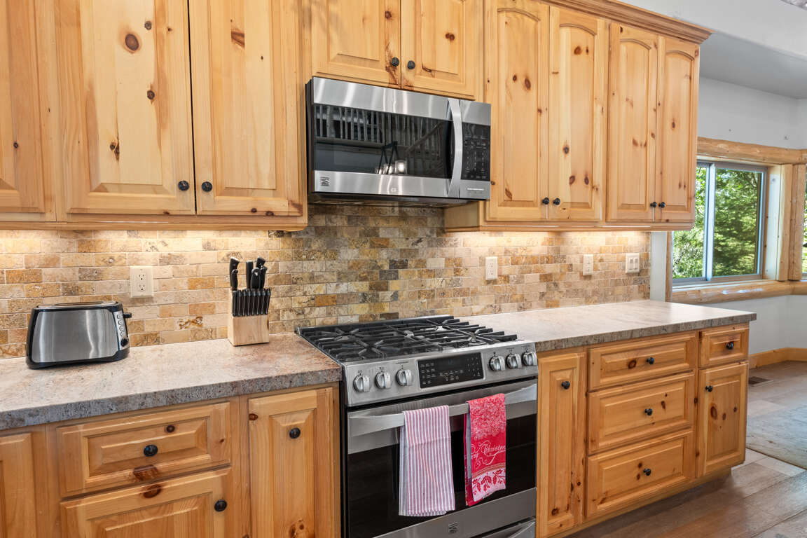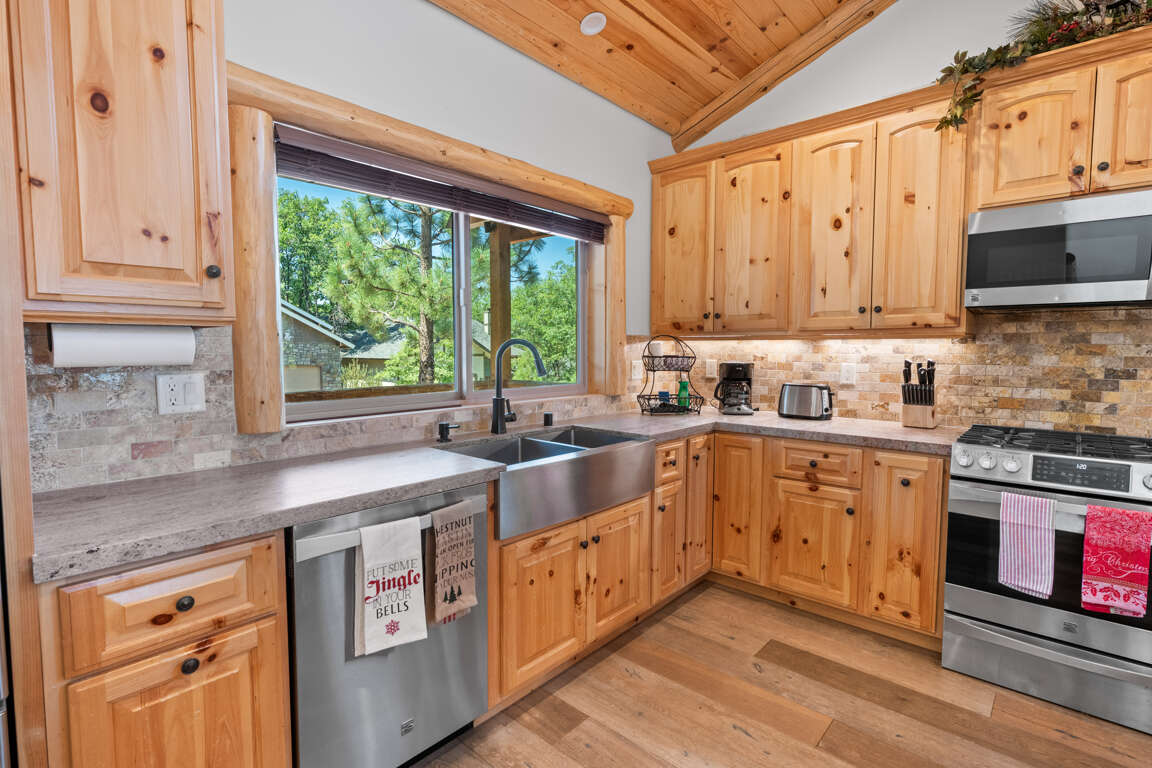 Unwind by the cozy fireplace, whip up feasts in the chef’s kitchen with stainless steel appliances, wine