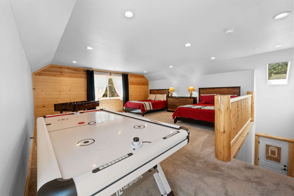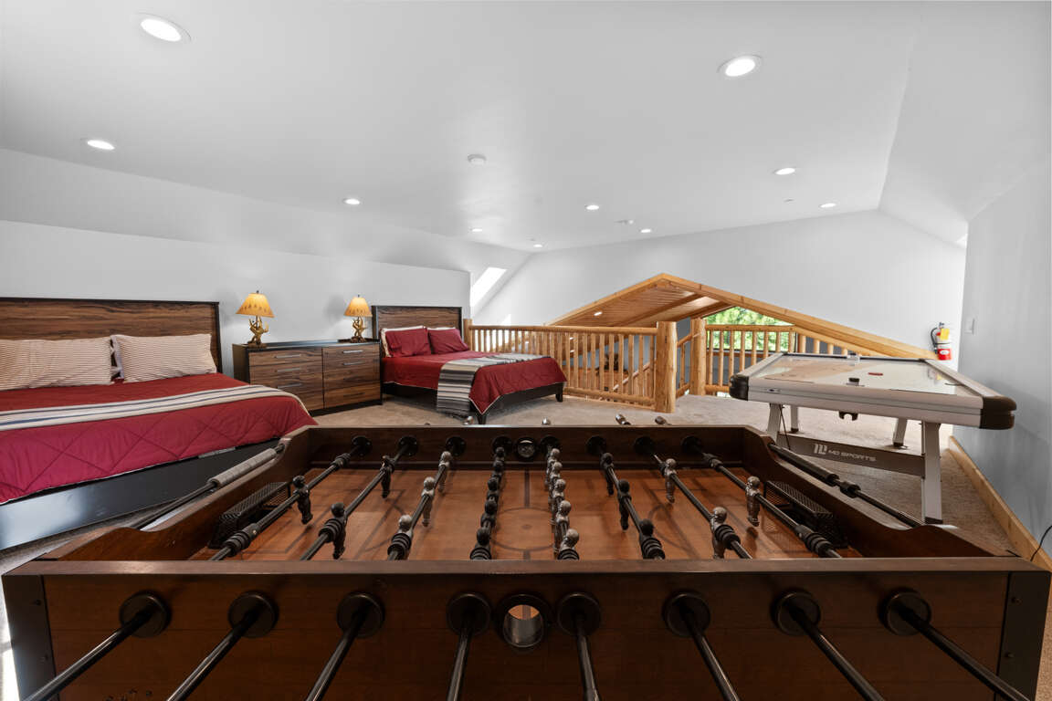 - Loft: Two Queen beds, foosball table, air hockey table.