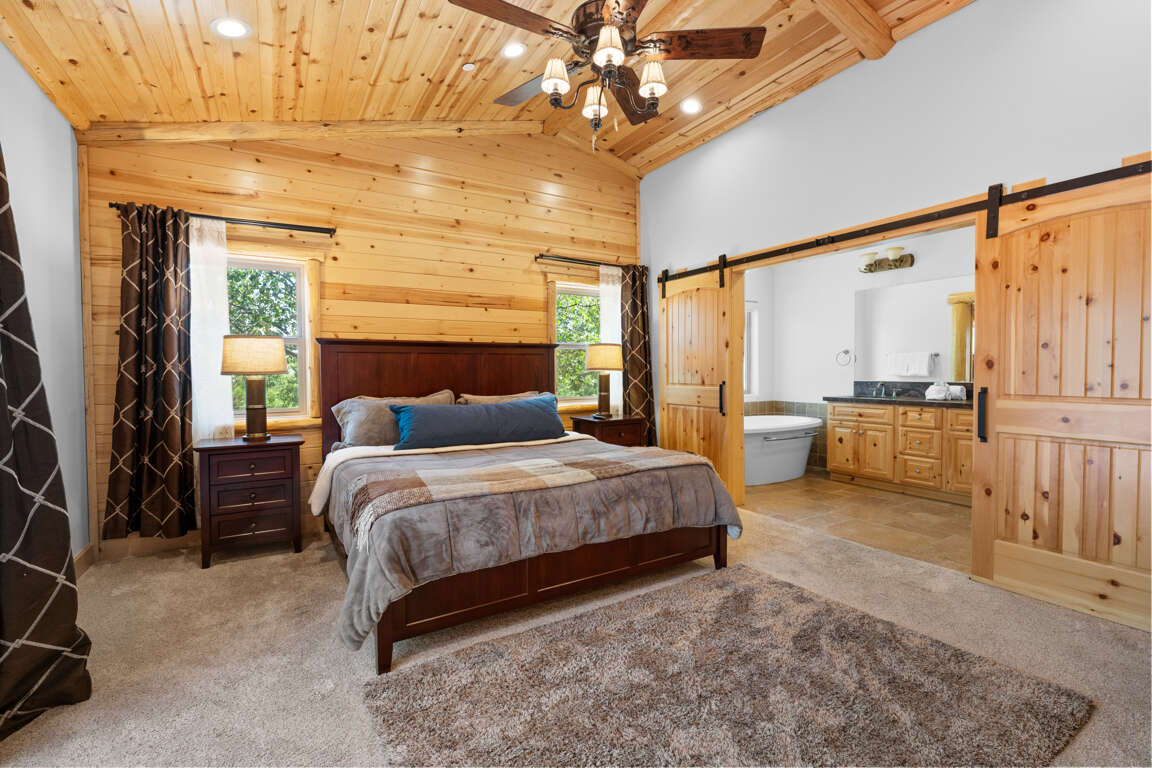 - Master Suite: King Bed, TV, Private Deck Access & En-Suite Bath w/ Walk-In Shower & Soaking