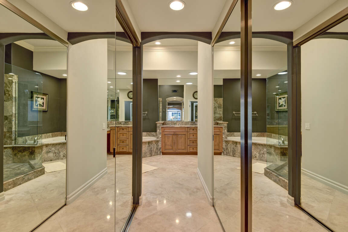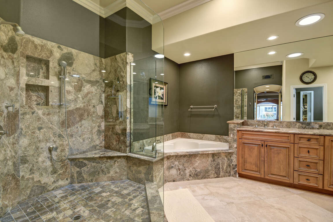 - Automatic window shades and glass showers with custom tilework enhance the experience