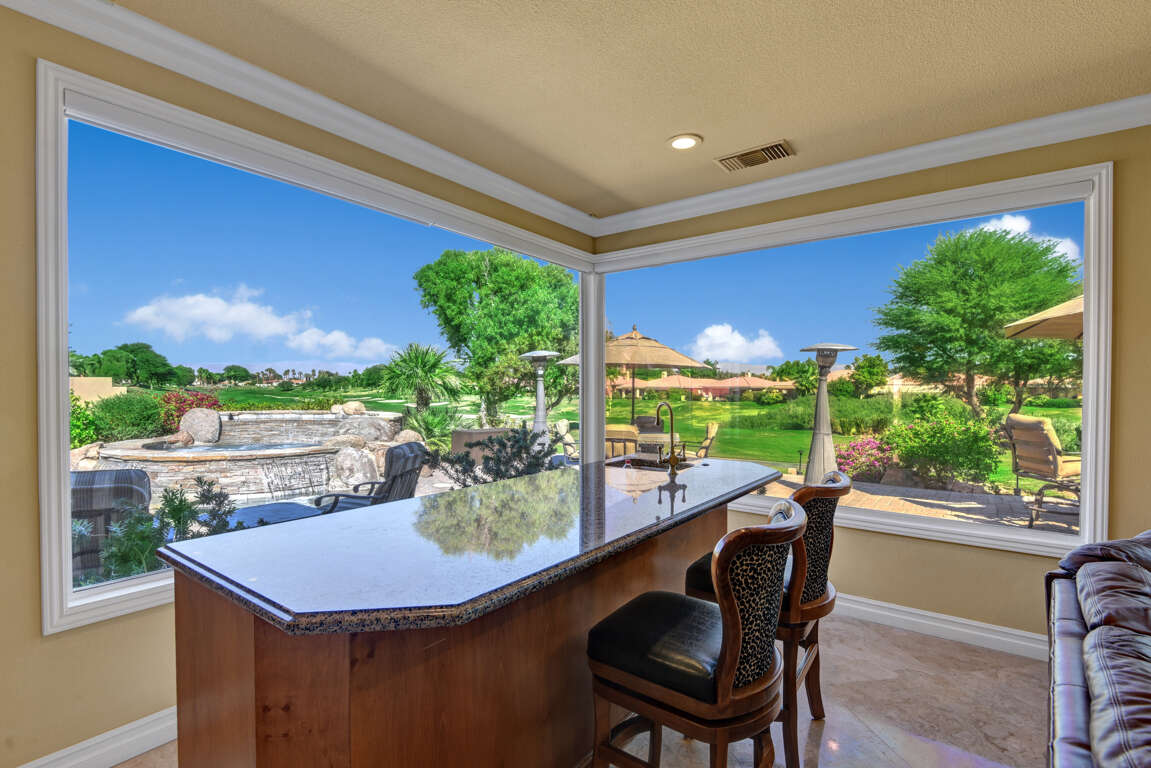 - Elegant open dining room with a well-appointed bar and a separate wet bar for entertaining