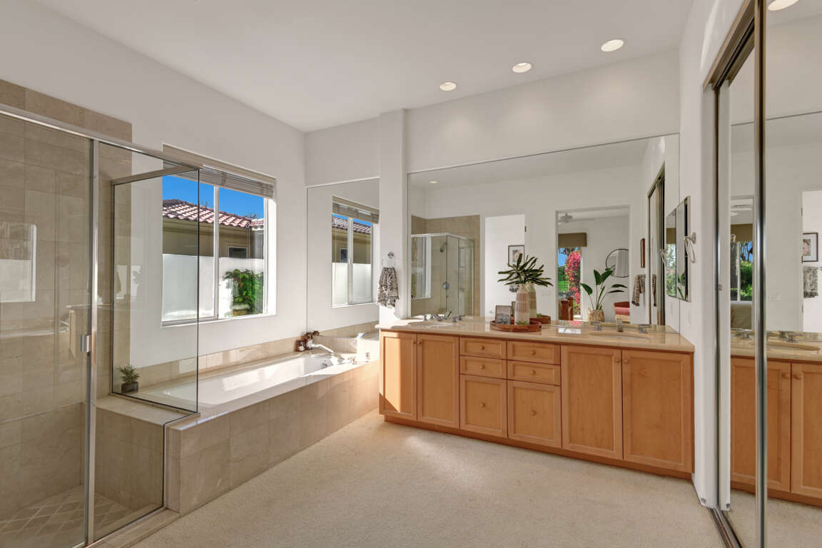 large ensuite bathroom with bathtub, separate shower, walk in closet.