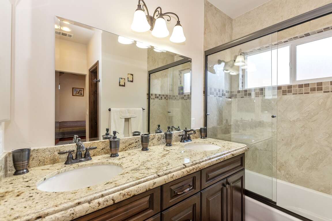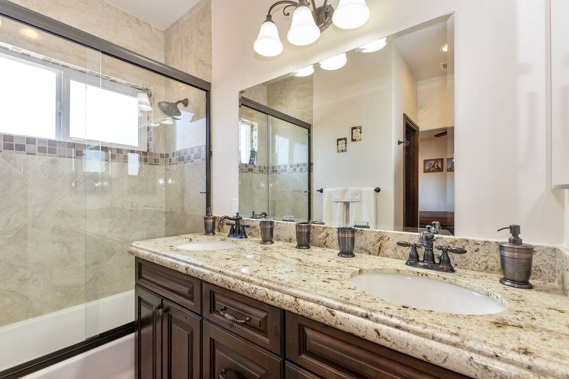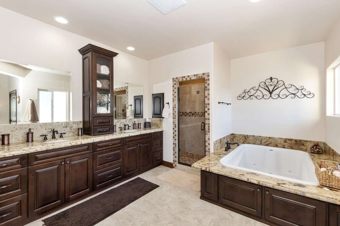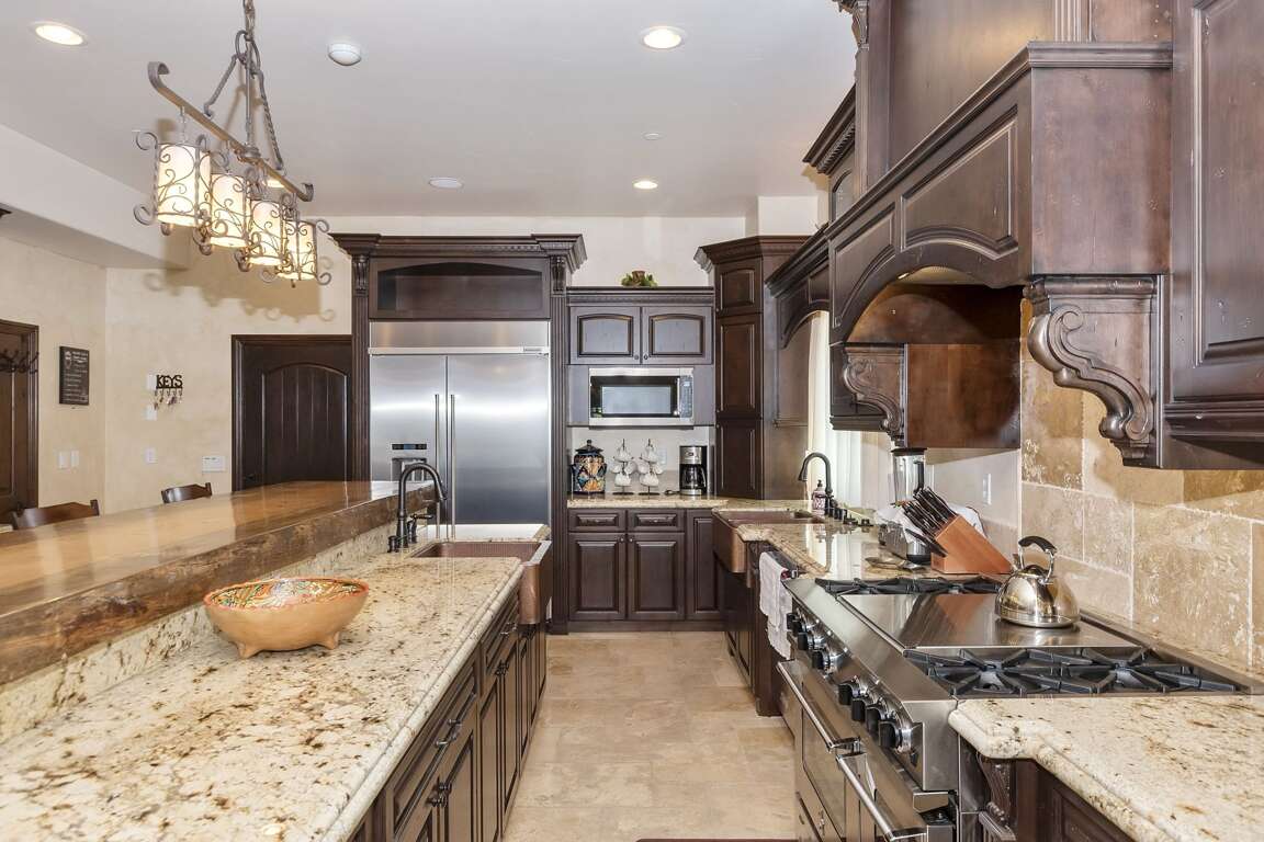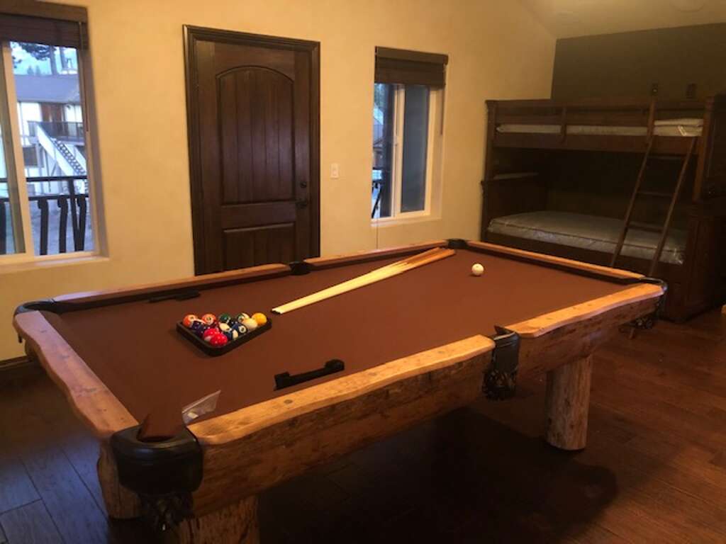True elegance in the mountains~This masterfully built home has 5,248 square feet of living space~6 bedrooms, each with their own bathroom (5 master suites) and 7 bathrooms~Featuring a massive open kitchen with granite counter tops and Knotty Alder self closing cabinets~Open to the dining, family room and living room w/wet bar providing you with the ultimate home for entertaining~Separate upper level game room w/wet bar~Lake views and views of Snow Summit ski slopes~Two rear decks to enjoy the cool evenings and stargaze~The upper deck wraps around 3 sides of the home~Two tankless water heaters~Huge 4 car attached garage with RV parking~Centrally located with easy access to the lake, ski slopes, Village, shopping and dining. This home has a pool table, foosball table, spa, and ping pong table for everyone to enjoy. ~All this and more located on a quiet cul de sac in the Eagle Point neighborhood~No detail has been overlooked~Room for all of your loved ones to spend time creating memories that last forever! Maximum of 12 adults + 4 children. LIC #VR-2022-1180