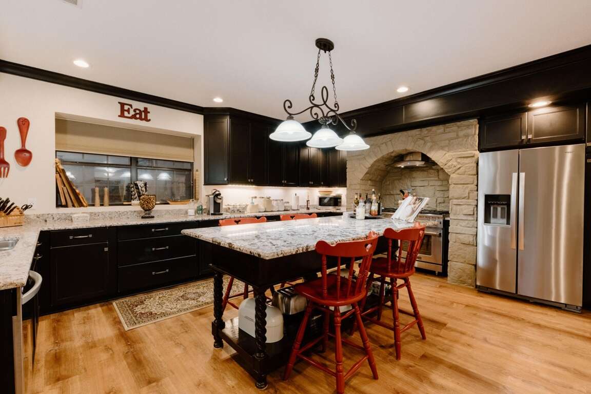 - Full kitchen on the upper level, full kitchen on the main level, and a full kitchen in the casita for convenience