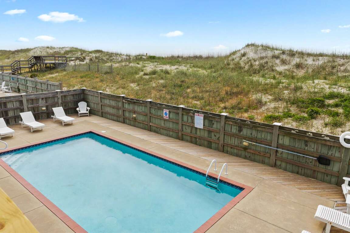 You'll be one step closer to heaven in this one-of-a-kind, spectacular oceanfront retreat. DUNE CRAB is not packed with bedrooms, at 4,484 sq. ft. ; it was designed for you to find your own space, indoors or out, in every season. This expansive four-level handicap-friendly home has an elevator for easy access to all levels of the home. Make a splash in the glimmering private pool with relaxing built-in whirlpool, or lounge around on the spacious poolside patio with bar. Fireplace not available