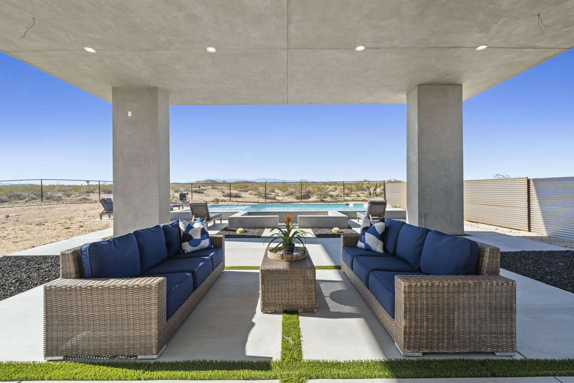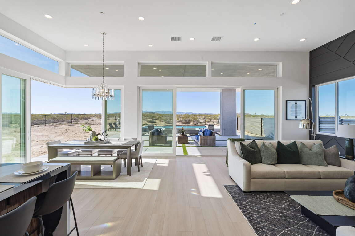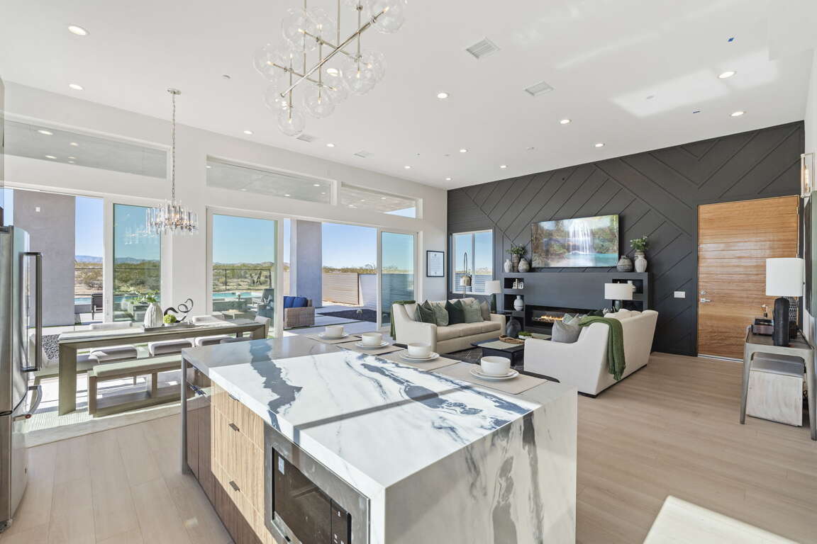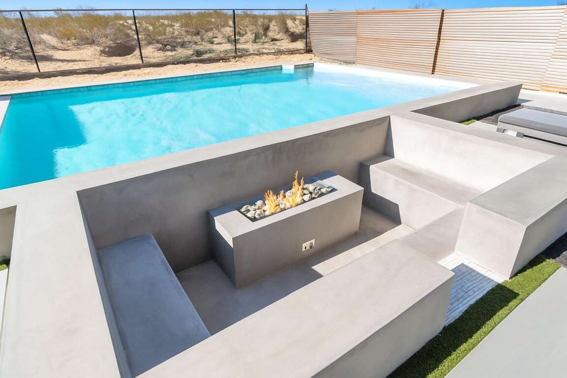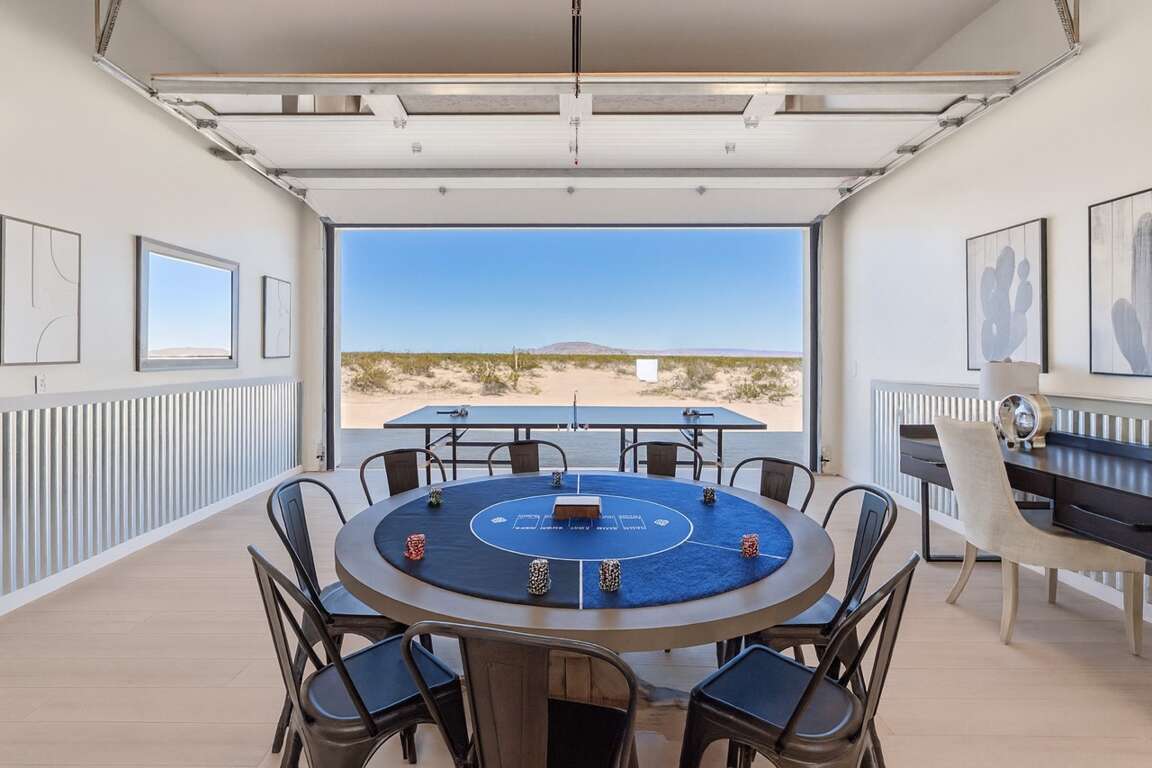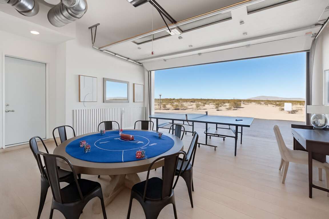 Inside, the open-concept living area flows around a sleek interior fireplace, while the dedicated game room keeps the fun going with a poker table, ping-pong, and more. Every detail has been designed for effortless desert entertaining or peaceful retreat.