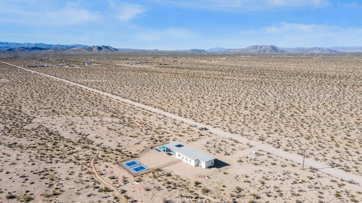 This brand-new, architecturally stunning 3-bedroom modern masterpiece sits on a secluded 5 acre parcel backing directly to hundreds of untouched acres of protected open land, delivering absolute privacy and soul-restoring seclusion in one of the most coveted locations in the high desert.