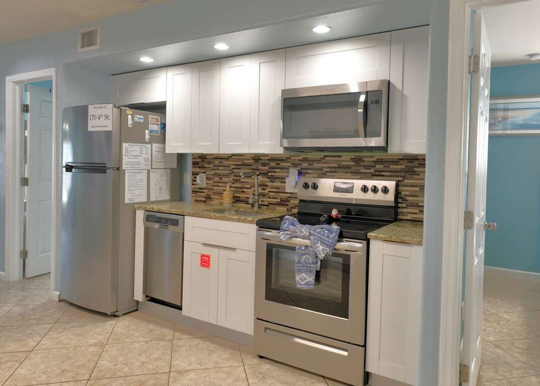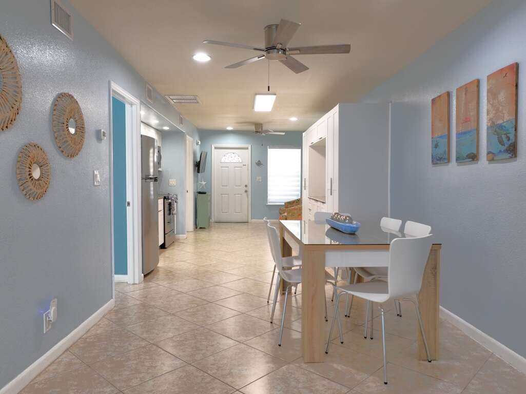 Modern Amenities: The Blue Bungalow is beautifully updated, bright, and fresh. With modern updates throughout the property, including smart TVs in every room, a full-size washer/dryer, and a fully equipped kitchen, you'll have everything you need for a comfortable and enjoyable stay.