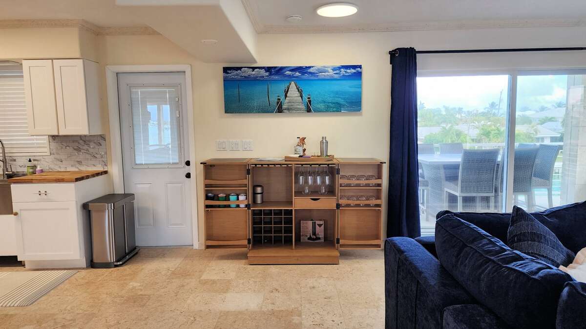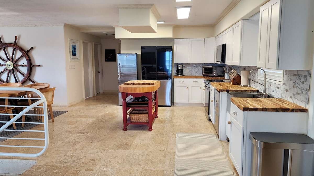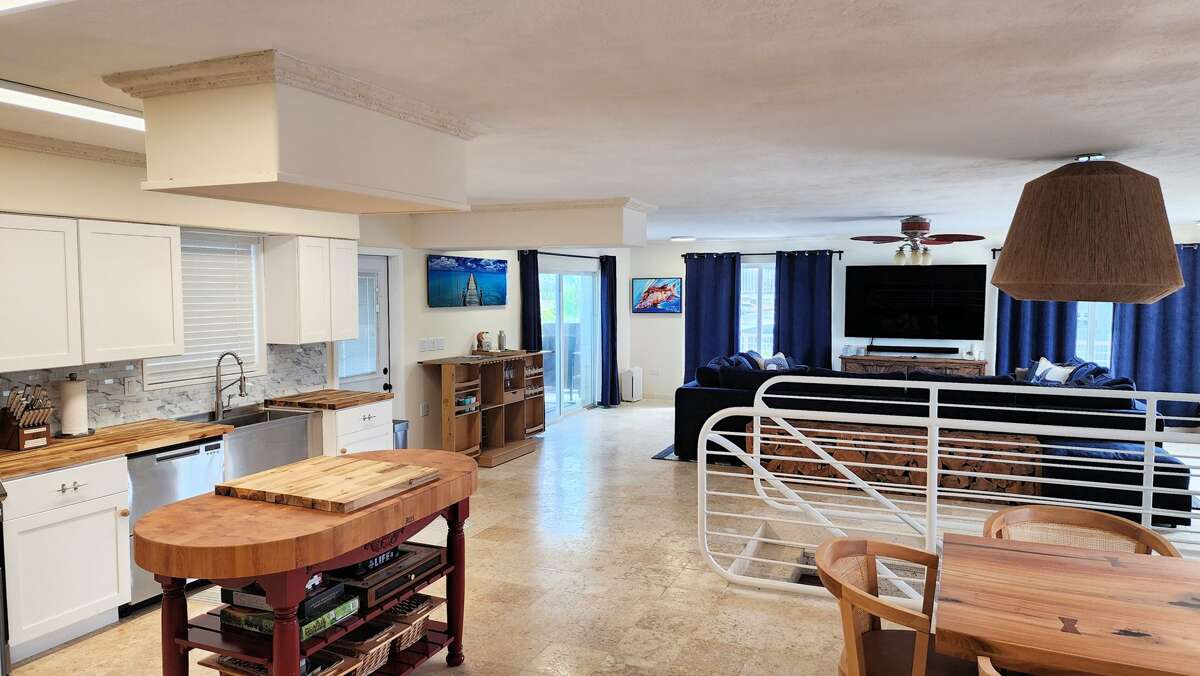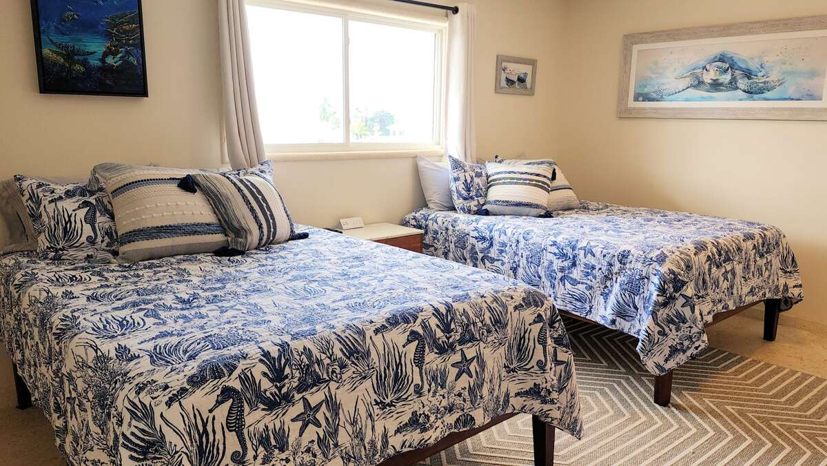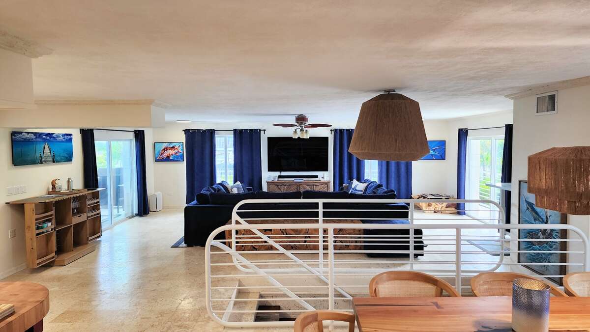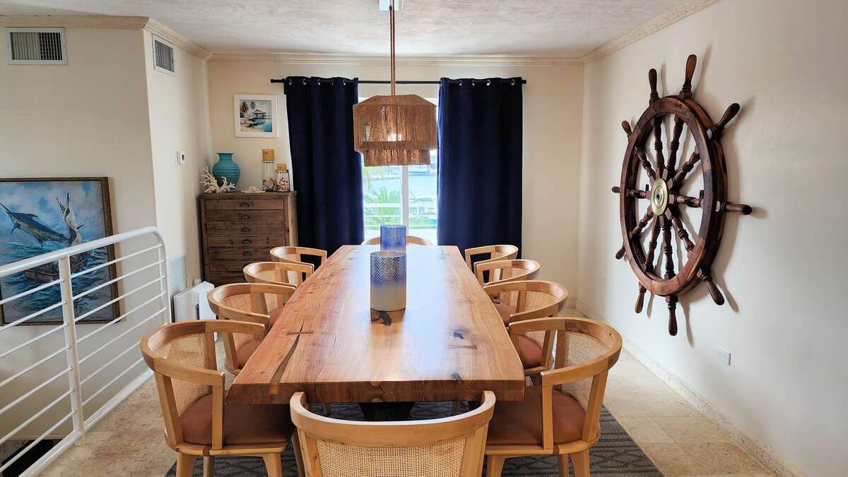 3 bed 2 bath sleeps 8 with two super comfortable kings and a third bedroom with two queen beds. Lavishly decorated with artwork from the finest artists in the islands. Fully equipped for serious fishing and endless fun…4-foot Magma fish cleaning station, commercial 75lb/day filtered MAXX Ice-maker, Midea chest freezer, 24-rod holder rack, 300lb rolling gear cart, 7-burner 72,000BTU waterfront grill, along with kayak, pickleball, cornhole and many more games to keep the whole family entertained.