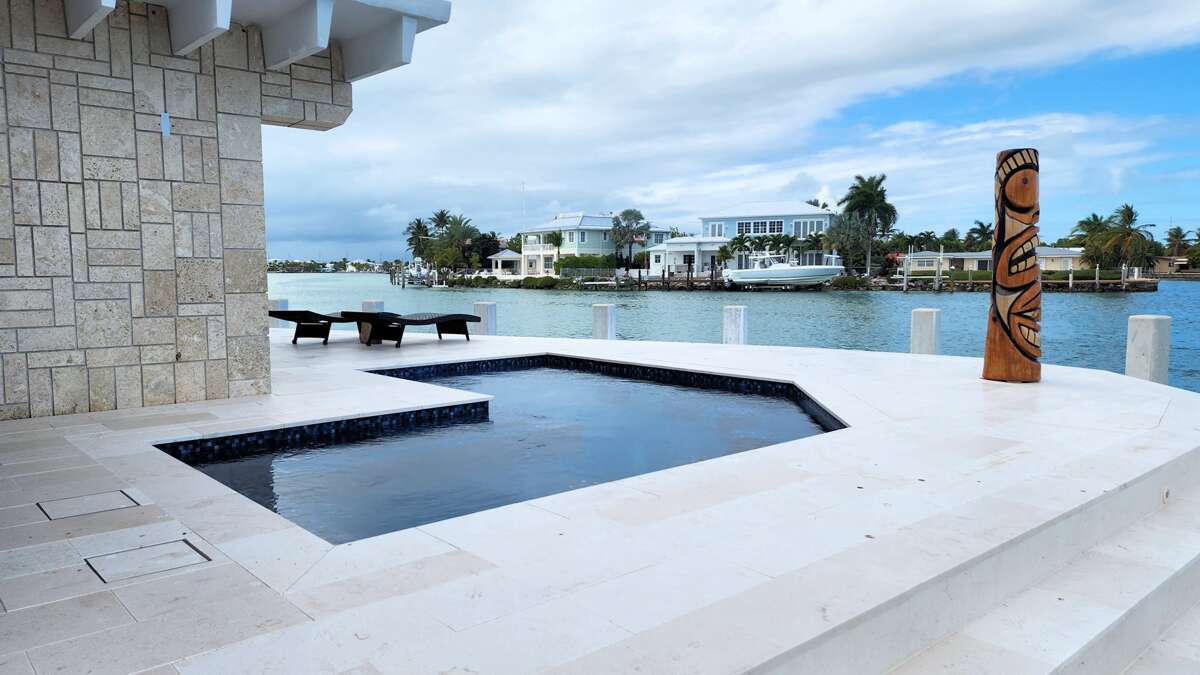 The legendary Coral House available to rent for the first time ever! One of the most beautiful lots and sunset views in sought after Key Colony Beach. Private gated point with 354 feet of concrete dockage including a 50-foot protected boat slip. Endless light with panoramic 180-degree open-water views from Vaca Cut to Shelter Bay. 360-degree wrap-around balcony provides waterfront sunrise breakfast to sunset cocktails, as you watch the boat parade go by. Luxurious social open floorplan with top-line all new Arhaus and RH furnishings, plus a massive LoveSac couch with seating for 10, four large screen LG HDTVs (55-77-inch OLED) and Starlink internet. The solid wood furnishings including a 10-foot dining table for 10, plus outdoor waterfront high-top with seating for 8. State-of-the-art butcher-block Shaker kitchen with massive Boos Block island, Samsung 4-door refrigerator with 24-inch touchscreen, plus separate upright freezer, Breville oven, Fisher & Paykel dishwasher, LG Studio washer/dryer, and instant endless hot water.
