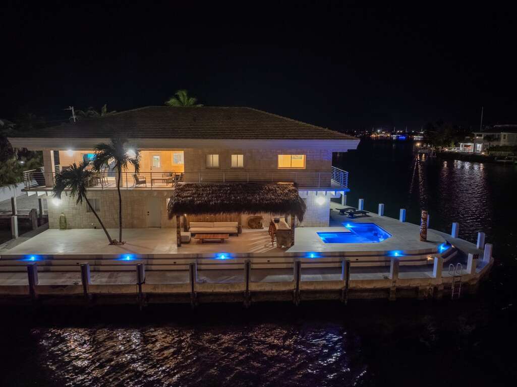 3 bed 2 bath sleeps 8 with two super comfortable kings and a third bedroom with two queen beds. Lavishly decorated with artwork from the finest artists in the islands. Fully equipped for serious fishing and endless fun…4-foot Magma fish cleaning station, commercial 75lb/day filtered MAXX ice-maker, Midea chest freezer, 24-rod holder rack, 300lb rolling gear cart, large 72,000BTU waterfront grills, along with kayaks, pickleball, cornhole, ring-toss and many more games to keep the whole family entertained.