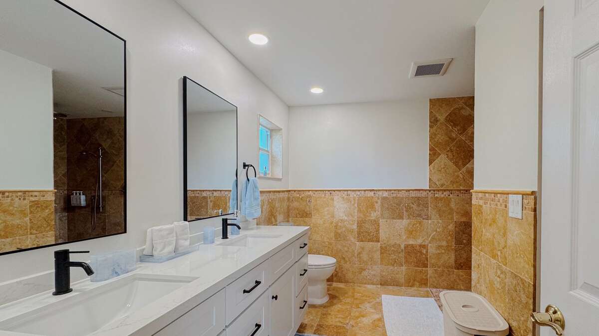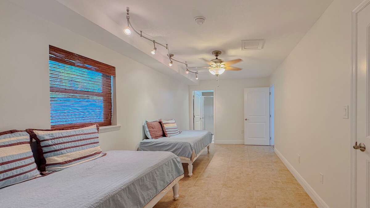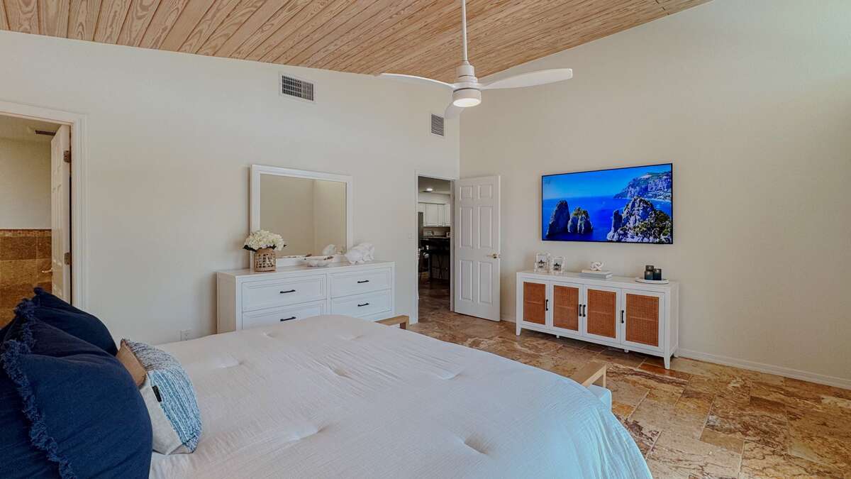The home sleeps up to 10 guests comfortably. The master suite offers a king-size bed and en-suite bath, while the additional bedrooms feature queen beds and twin options, perfect for kids or friends. With three full bathrooms, getting ready is a breeze—even for larger groups.