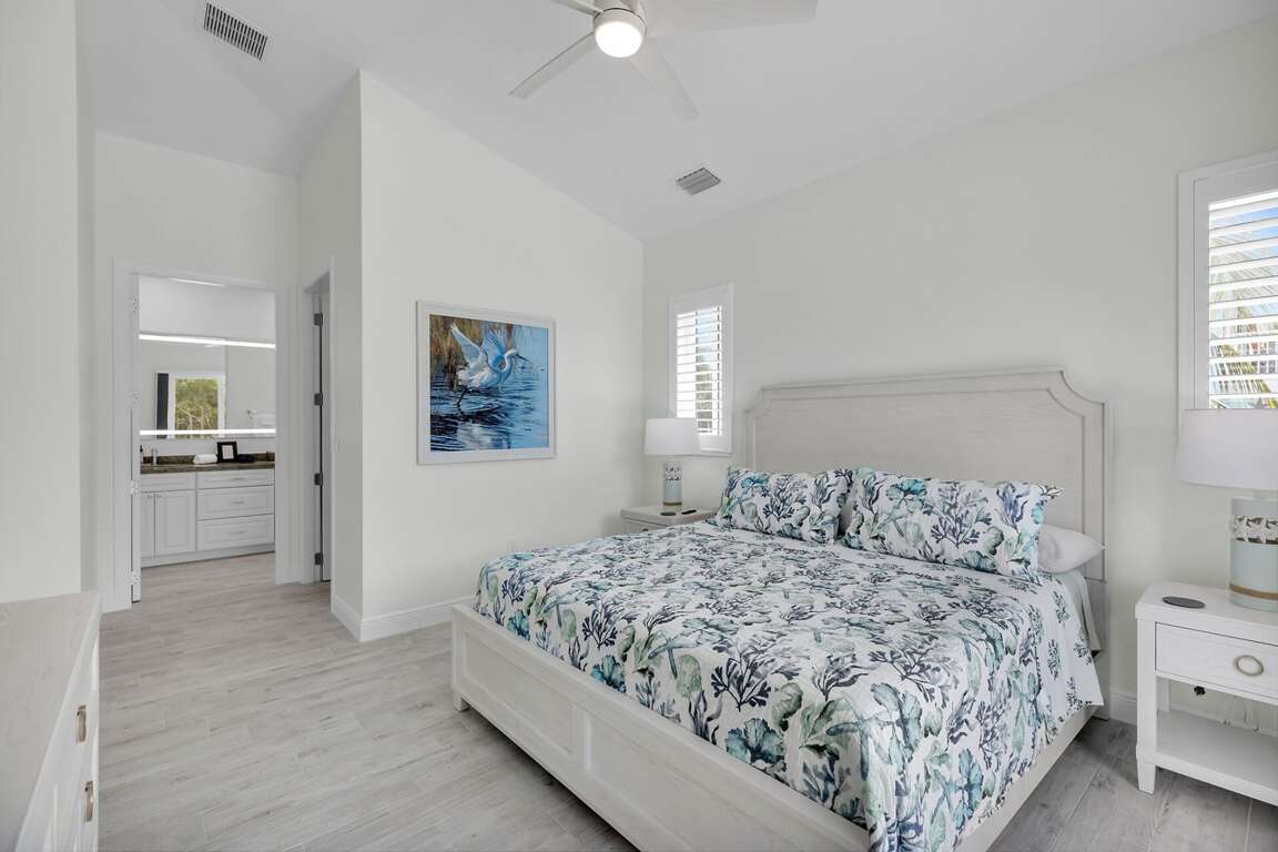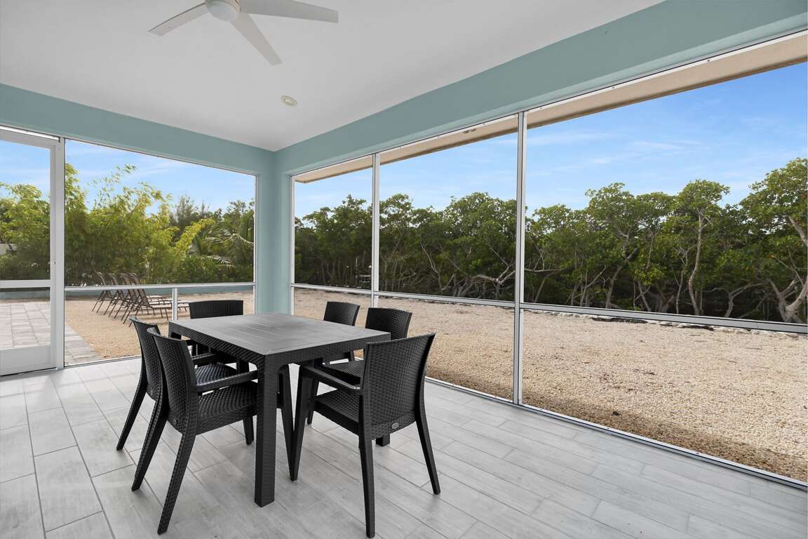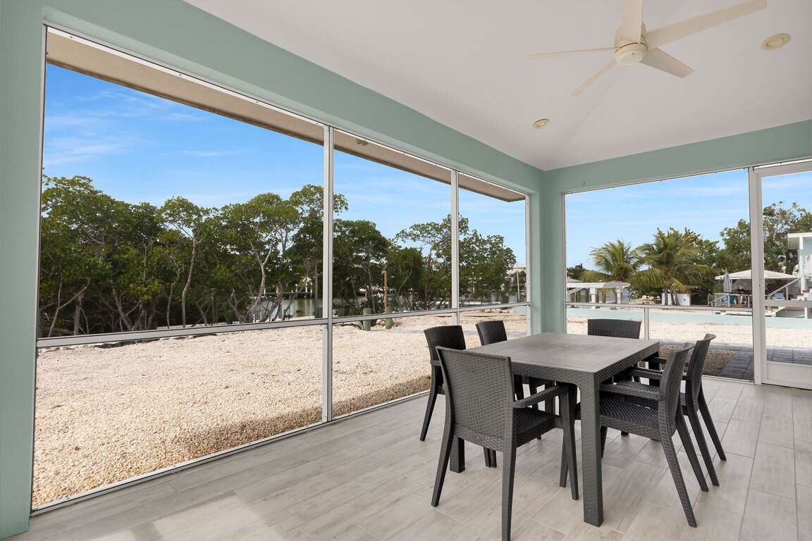 Enjoy warm island breezes from the large screened-in porch, an ideal spot for morning coffee, evening cocktails, or simply unwinding after a day on the water.