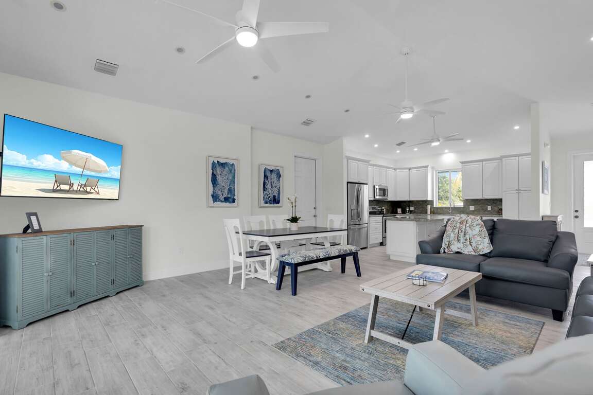 Step inside to an inviting open layout with stylish décor and modern finishes throughout. Each bedroom features its own TV and comfortable bedding, including a King, Queen, and two Twin beds—perfect for families or groups.