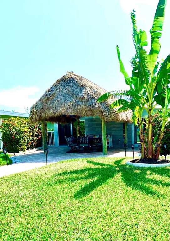 Pool/Beach Club membership included with stay! Manatee Bungalow is an all new 3 bedroom/3 full bathroom private single-family waterfront home in beautiful Key Colony Beach, Florida Keys! 200' wide boating canal, finger slip dock on property, fenced in back waterfront yard, huge tiki hut just outside back door, only 10 minutes to open water. We access gulf or ocean by boat via Vaca Cut in only minutes.