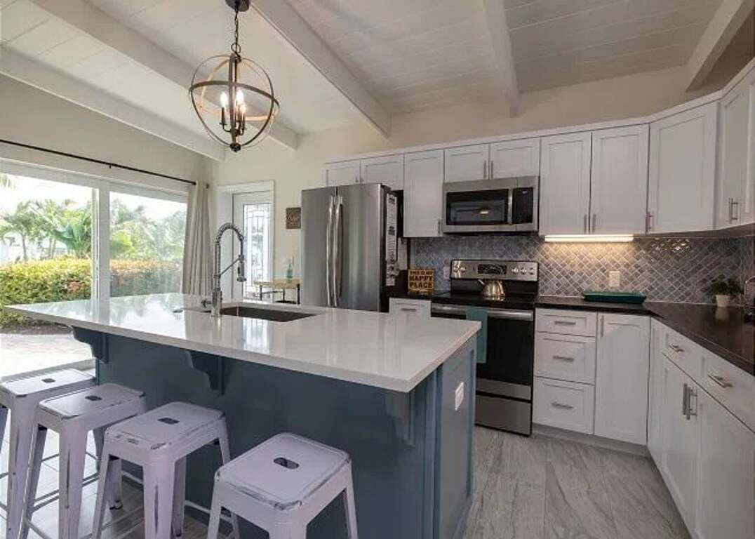 All-new luxurious interior 2020 featuring an open bright floorplan and fun coastal décor, new furnishings, fully equipped chef’s kitchen with new stainless appliances, quartz counters, large island, two large king bedrooms w/ en suite baths, glass showers, and more! Fabulous decorated Tiki hut with string lights makes for the true keys island experience, plus wonderful outdoor space waterside, grill, fish table, fully equipped for fishing and your boat, Xfinity high speed internet, 4 new smart TV's with Comcast, games, cornhole, 5 kayaks, and so much more! We hope you will be our guest! 7 day minimum, Saturday to Saturday only bookings, unless specified otherwise. Contactless check in with door code We take pride in having happy guests; should a guest need anything during their stay, we are available and ready to help. KCB is an amazing self contained island, peaceful yet close to Marathon and other parts of the Keys. KCB has walking biking paths, parks, tennis and basketball courts, a par 3 golf course, Cabana Club with pool/beach/bar (included), restaurants, and so much more!