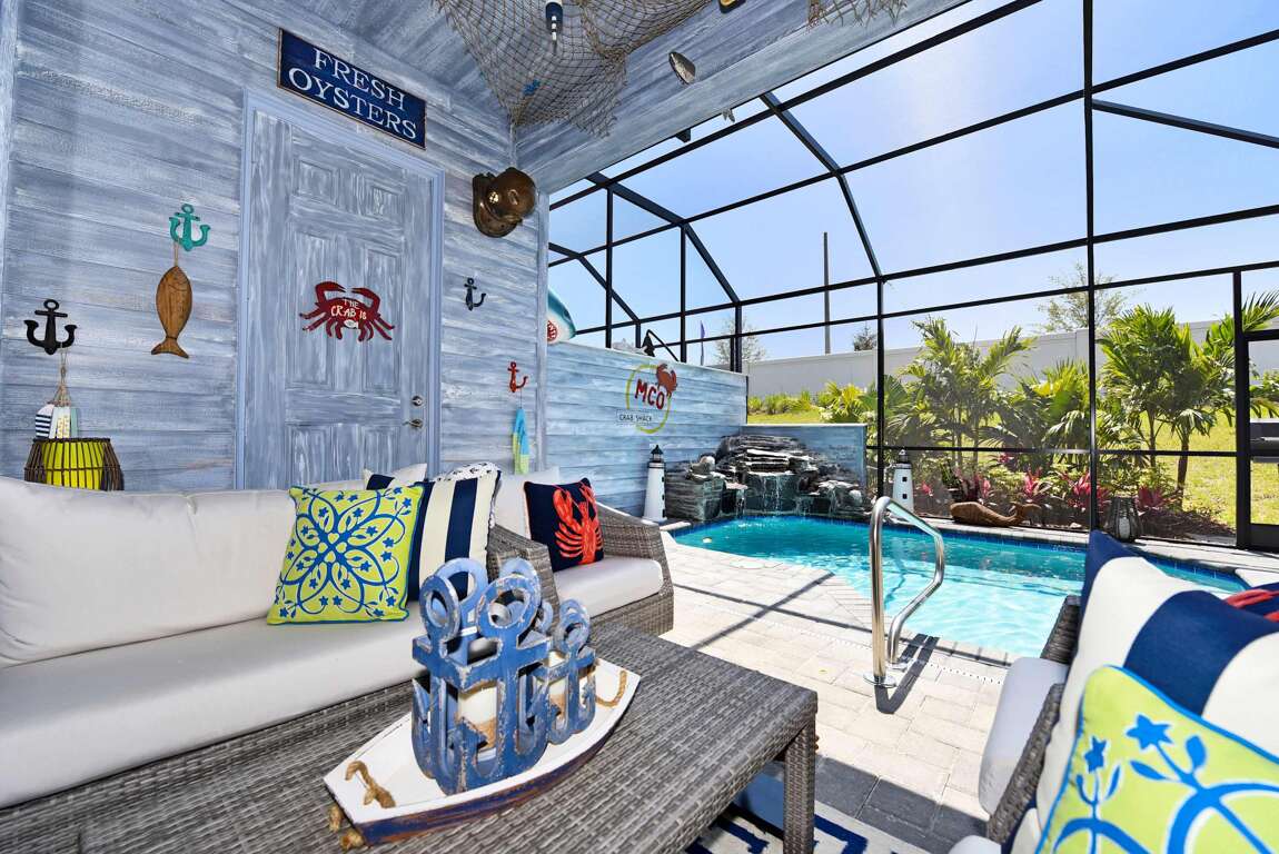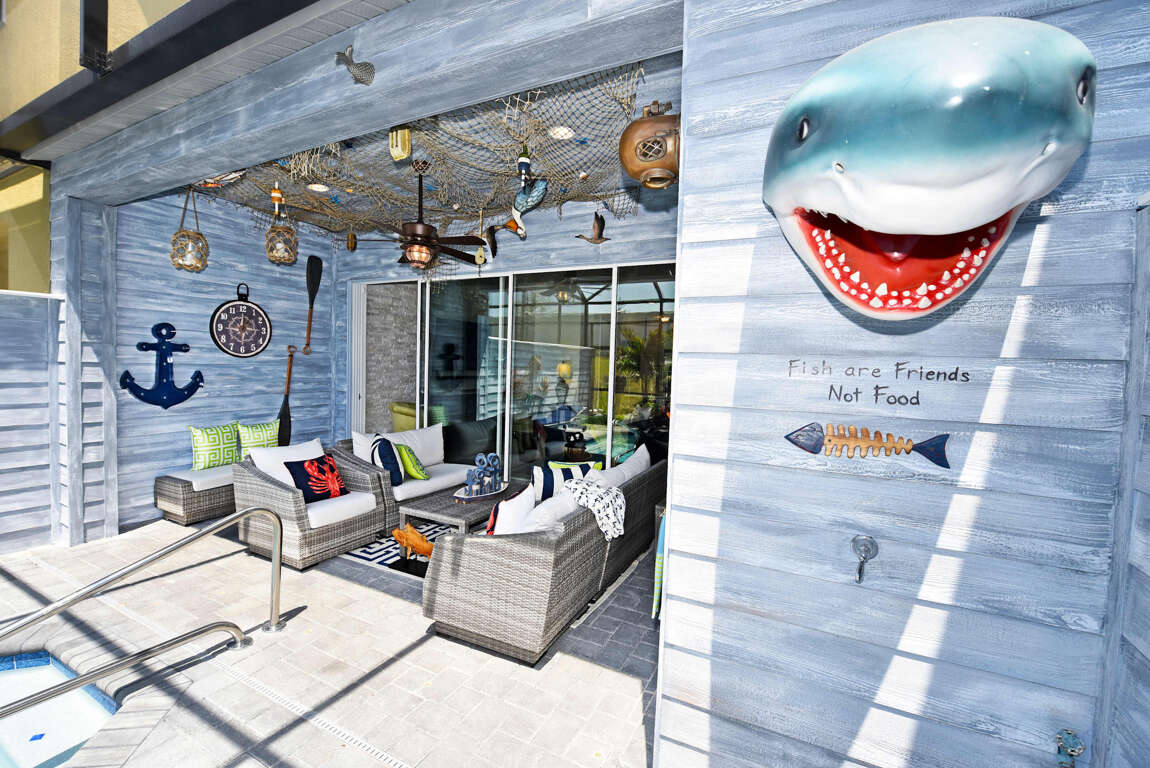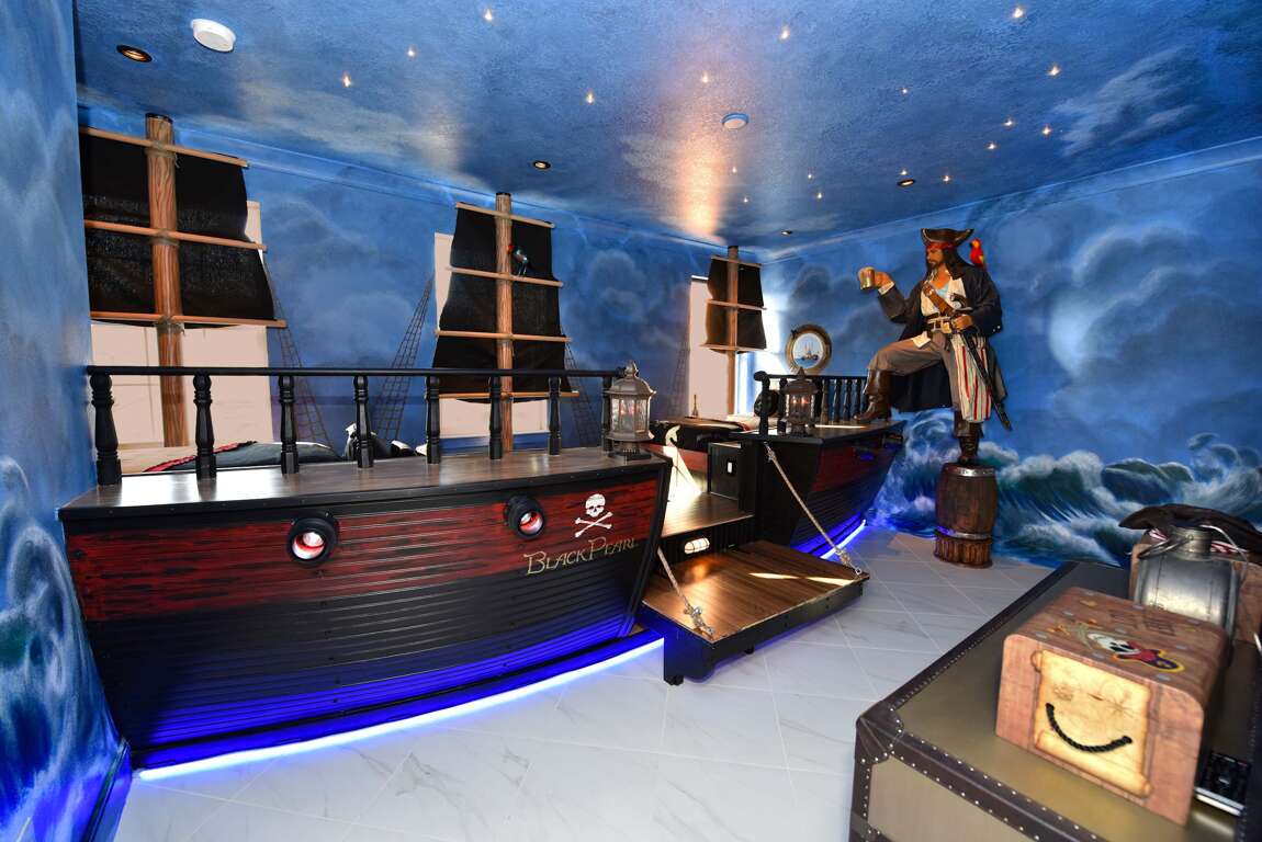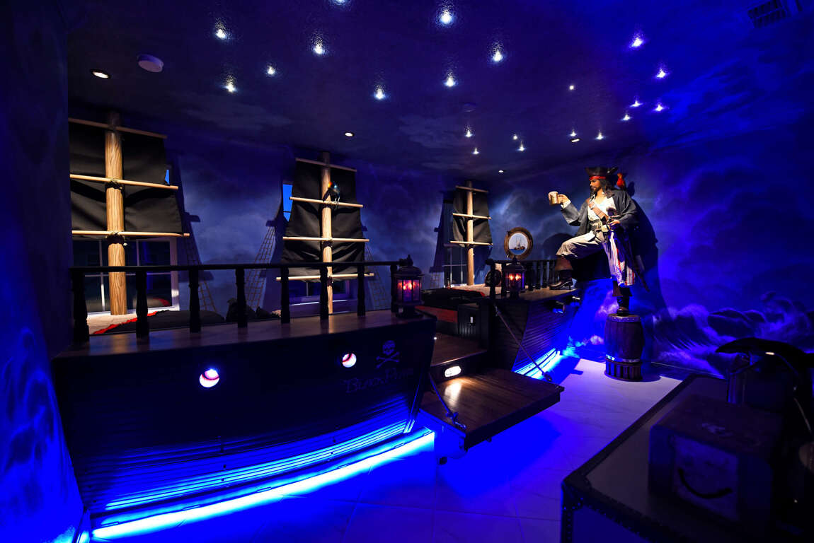 Festival-350 | Pirate Themed 3BR | Pool | Disney Avast Ye Mateys…. A dream-themed, hand-painted, pirate room can be found in this luxurious townhome which comfortably accommodates a larger family or group of up to 9 people. Girls and boys of all ages will enjoy this custom pirate ship bedroom! The elaborate props and extensive, hand-painted artwork ignites your imagination. No attention to detail has been spared in this professionally appointed residence. You will enjoy stylish, fun, and sophisticated styling throughout this townhome with soaring ceilings and gleaming tiled floors.