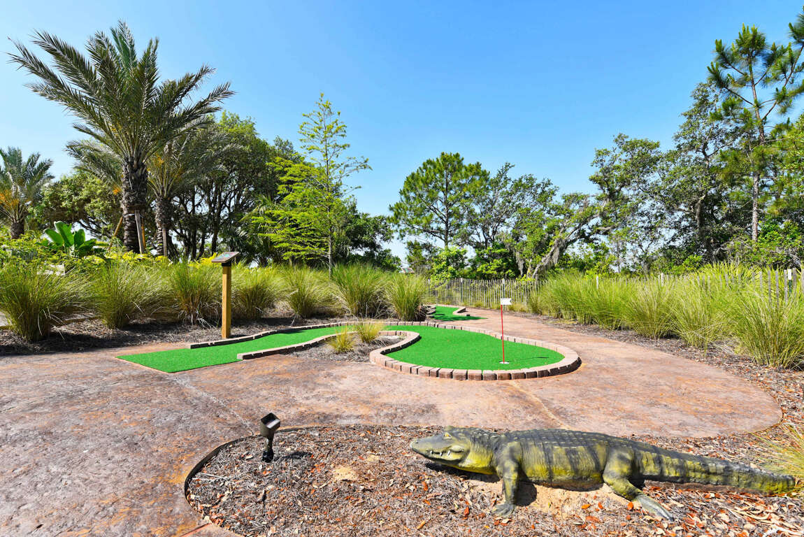 Located within the resort community, Champions Gate Golf Club features two premier 18-hole championship golf courses designed by accomplished architect and golfer, Greg Norman. The International Course is designed around scenic natural wetlands and features long carries, deep pot bunkers, tall grass-topped dunes, and large undulating greens. The National Course is designed in the "Florida golf resort" style, featuring naturally rolling central Florida plains, spring-fed lakes, bunker-protected fairways and greens, and small, challenging putting surfaces.