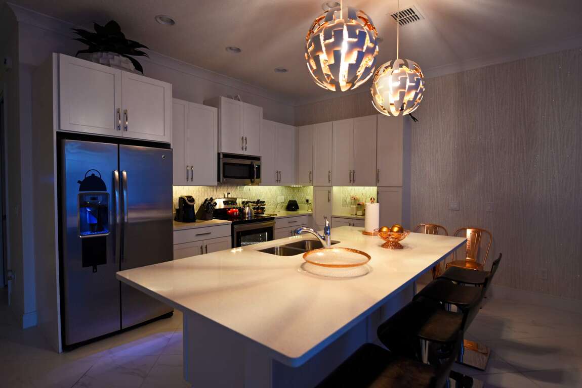 In the large, fully equipped kitchen, the family chef is sure to create a meal that the whole crew will love. After dinner, families can wind down in the upstairs eclectic lounge area and watch one of the many movies provided on the 60” 4K, 3D TV with sound system. The modern and bright main floor living space features an even bigger, 65” 4K, 3D curved TV with a surround system. All bedrooms also include TVs and Blu-ray players. Other touches include board games, books, DVD libraries, and so much more.