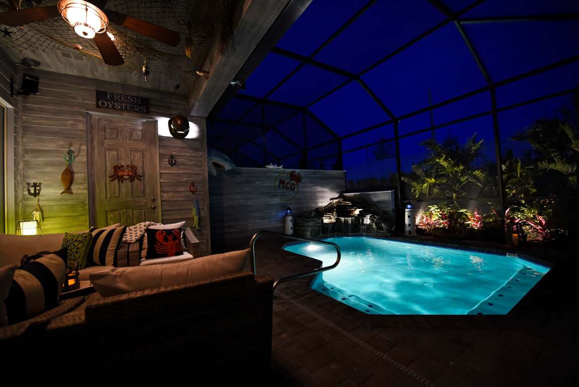 Set sail as you take a dip in the plunge pool, a private oasis including a charming waterfall. Plenty of comfortable seating is available to relax in the private screened area. The convenience of an outdoor bathroom makes this area one you won’t want to leave. A grill is located steps away from the screened pool area, where fuel is at the ready. Laundry is in the unit and an open parking lot is right outside the unit.