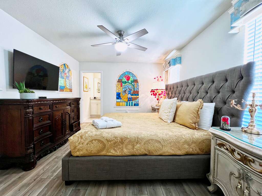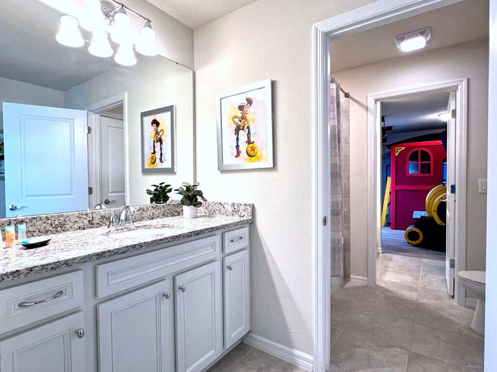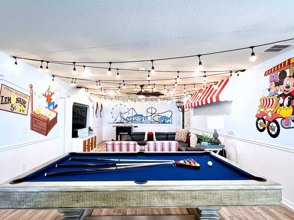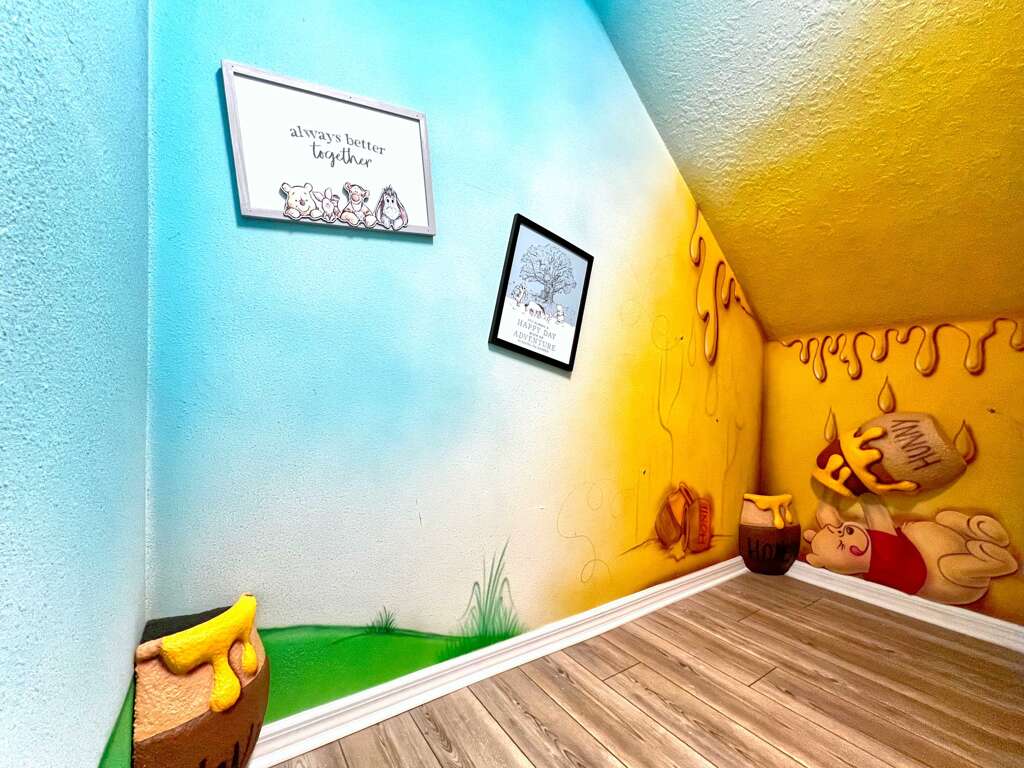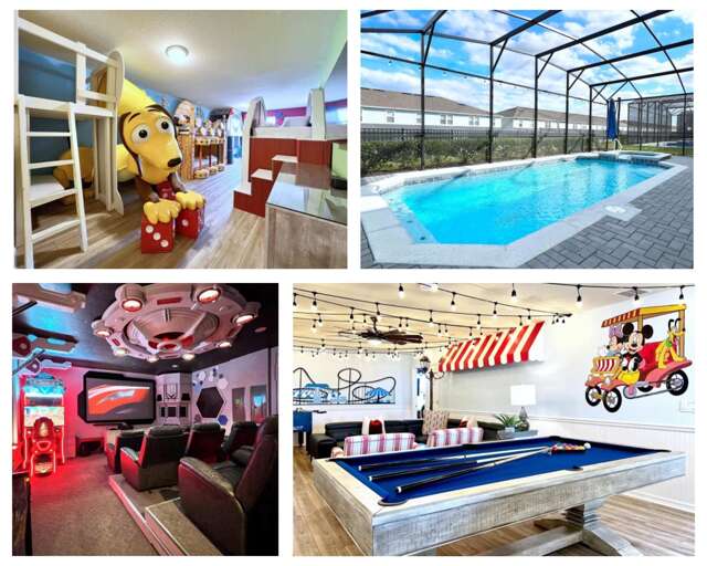 Prepare to be genuinely wowed the moment you step inside this extraordinary themed 7-bedroom home in the gated, highly sought-after Windsor Island Resort. Designed to impress at every turn, this one-of-a-kind retreat features a Toy Story–themed bedroom complete with a slide, a private home theater, and a Disney-themed game room that delivers nonstop fun. Each themed space feels like an experience of its own—from the enchanting Beauty and the Beast room to the charming Winnie the Pooh bedroom, the immersive Harry Potter train–themed room, and even a whimsical Mary Poppins–inspired space. Outside, enjoy your private pool and spa, while inside, ultra-upscale furnishings and stunning design details elevate the entire home. This isn’t just a vacation rental—it’s a destination, and truly one of the most impressive homes you’ll find near Disney. Windsor Island - Davenport, Florida is an upscale gated community located just 20-25 minutes from Walt Disney World. This luxury home sits nestled just outside of Orlando, Florida, and has quickly become one of the most desired locations in the Orlando area. During your stay, you will enjoy this well-appointed home that has been designed and decorated to provide you and your family with an abundance of luxury amenities and leaves you well-equipped to vacation with all the usual items you would expect to find at home. Windsor Island is only a 30-minute drive from the Orlando International Airport and is situated central to all of Orlando’s famous attractions. This spacious 7-bedroom holiday villa can comfortably accommodate a larger family or group of up to 18 people.