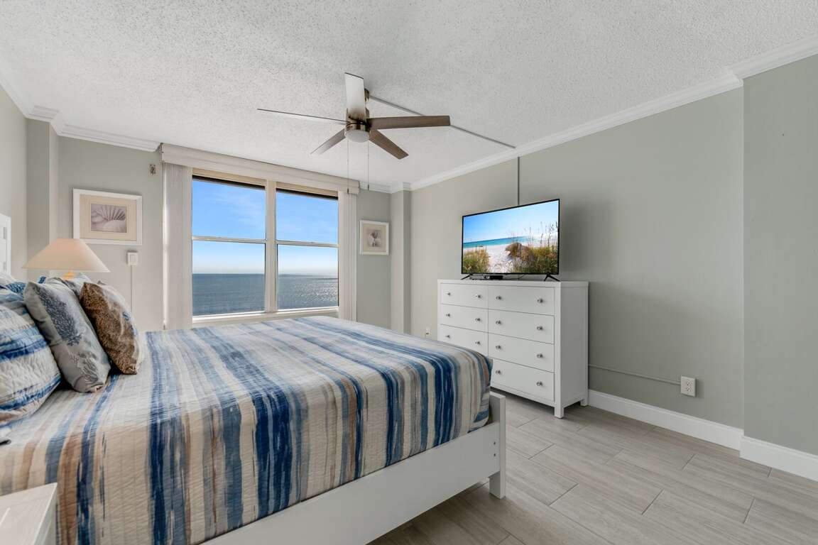 This 2-bedroom, 2-bathroom condo was completely renovated in April 2025 with modern finishes and all-new bedroom furniture. Every room in The Aquarius 805 features breathtaking ocean views, giving you the coastal escape you’ve been dreaming of. Step onto your private balcony to soak in panoramic views of the pool and beach below—ideal for morning coffee, evening cocktails, or simply watching the waves roll in.
