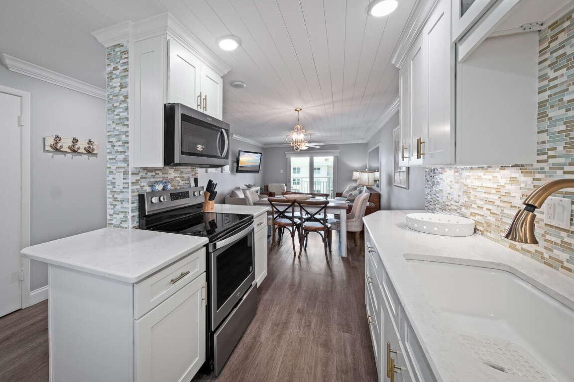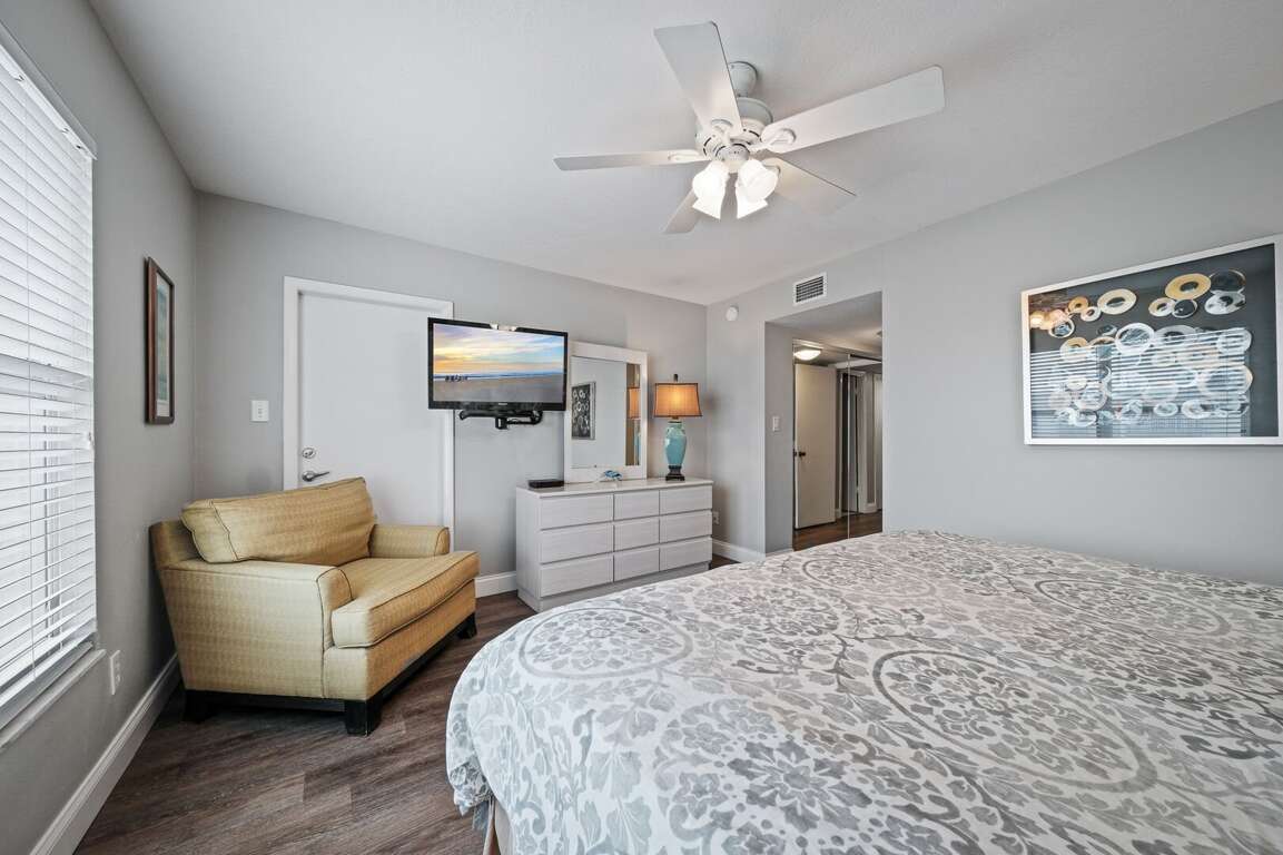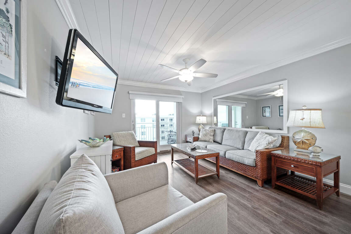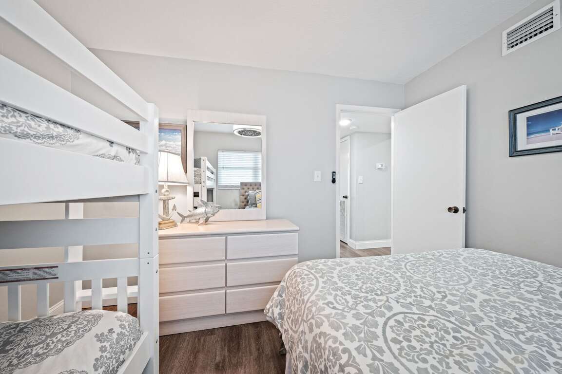 Welcome to Sea Coast Gardens 2 condo 507 "Modern Dunes Escape"! Recently renovated and updated, this desirable 2/2 is located on the top floor which offers views of the beach, ocean, pools, shuffle board courts, beach deck and clubhouse. You can also enjoy a quiet stay without the disruption of any guests above you. Sleeps 6 without the use of a sleeper sofa with a King bed in master and a Queen bed with a Twin Bunk bed in guest bedroom. Large flat screen TV in living room, TV in Master Bedroom and TV in Guest Room. <br />