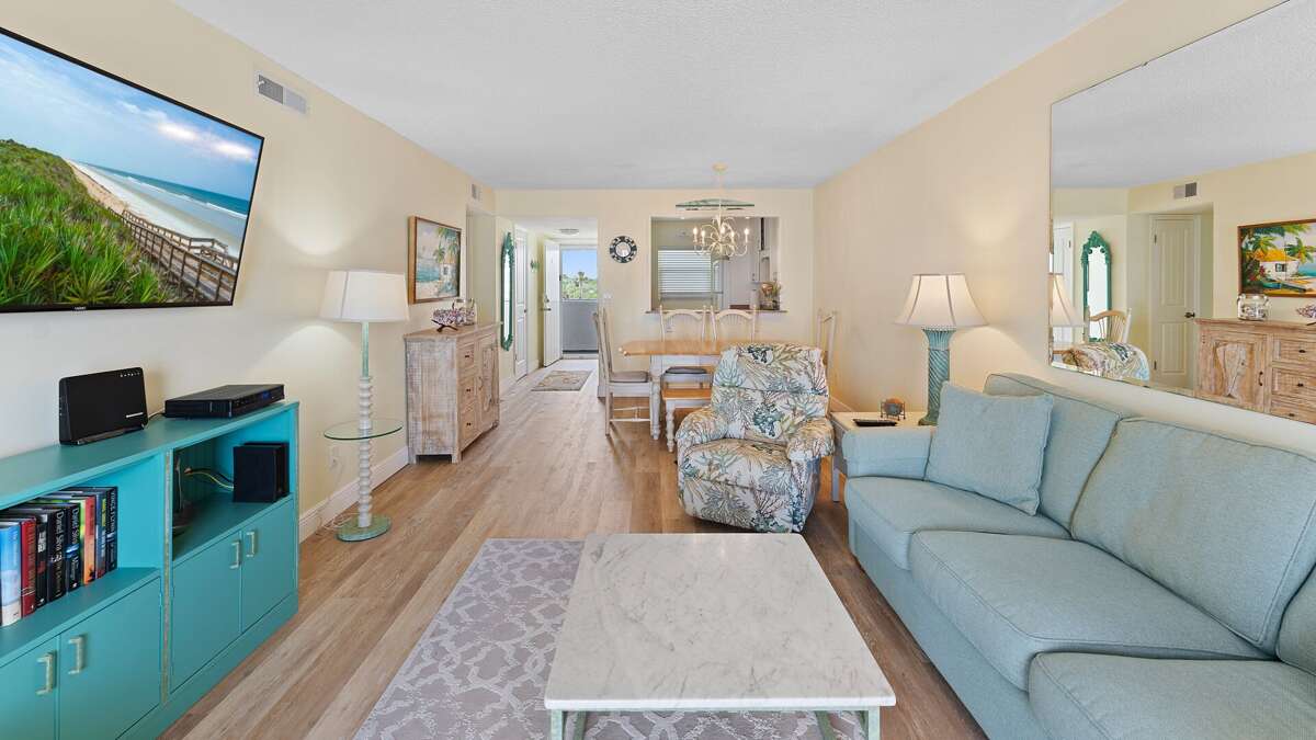 Discover the charm of our 2-bedroom Sea Coast Gardens Iii Sc3-304 condo in New Smyrna Beach, FL, boasting amenities like internet access, TV, a well-equipped kitchen with a dishwasher, and a communal pool.