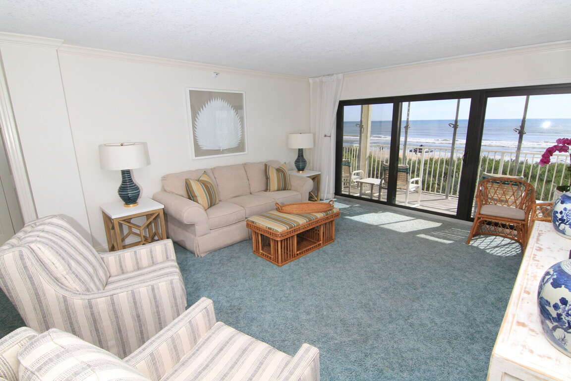 Located in New Smyrna Beach, FL, our 2-bedroom oceanfront condo offers comfort and luxury amenities like a community pool and grill, making it a perfect place to stay for your vacation.