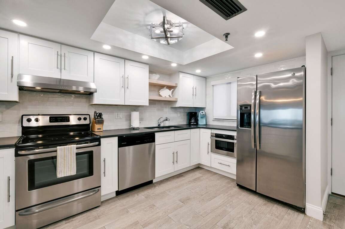 - A modern kitchen with stainless steel appliances and sleek finishes<br />