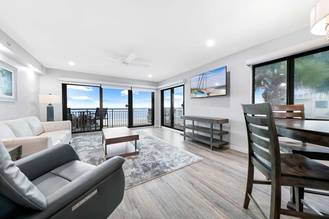 Welcome to Shorehom by the Sea #34! This fully renovated, luxury corner condo is a true gem, offering unparalleled direct oceanfront views of No-Drive New Smyrna Beach. Sunlight pours into this southern-facing property, creating a bright and inviting atmosphere throughout. The updated kitchen and bathrooms feature modern finishes and top-of-the-line appliances, ensuring your stay is as comfortable as it is stylish. Gather in the dining room at the high-top table, where you can enjoy meals with a backdrop of stunning Atlantic Ocean views.<br />