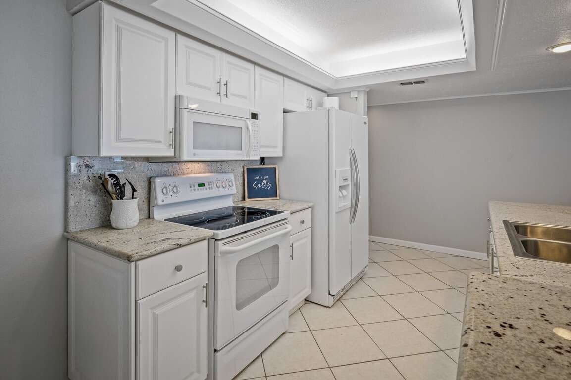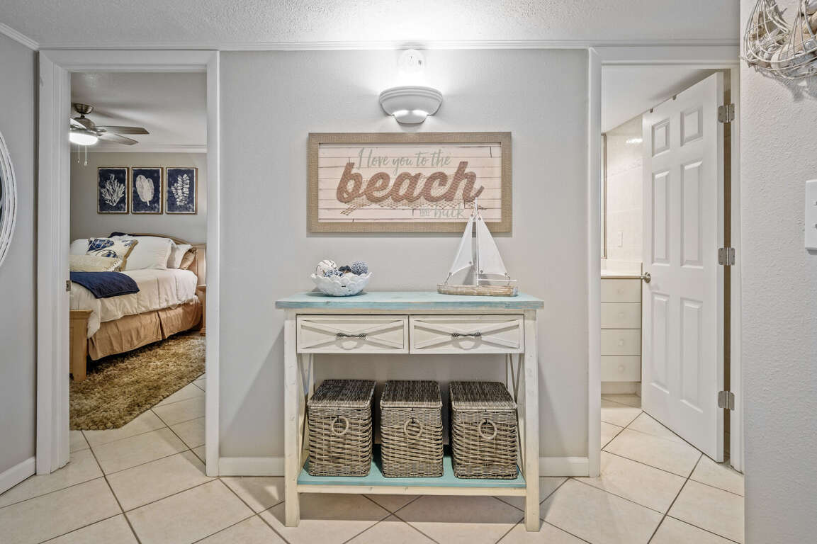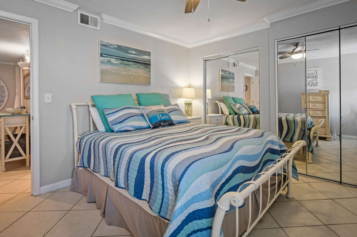 Inside, this well-appointed beachfront condo features a fully equipped kitchen, perfect for preparing meals after a day at the beach. The master bedroom boasts an ensuite bathroom, while the guest bedroom has a bathroom easily accessible just outside its door. Both bedrooms come with flat-screen TVs.<br />