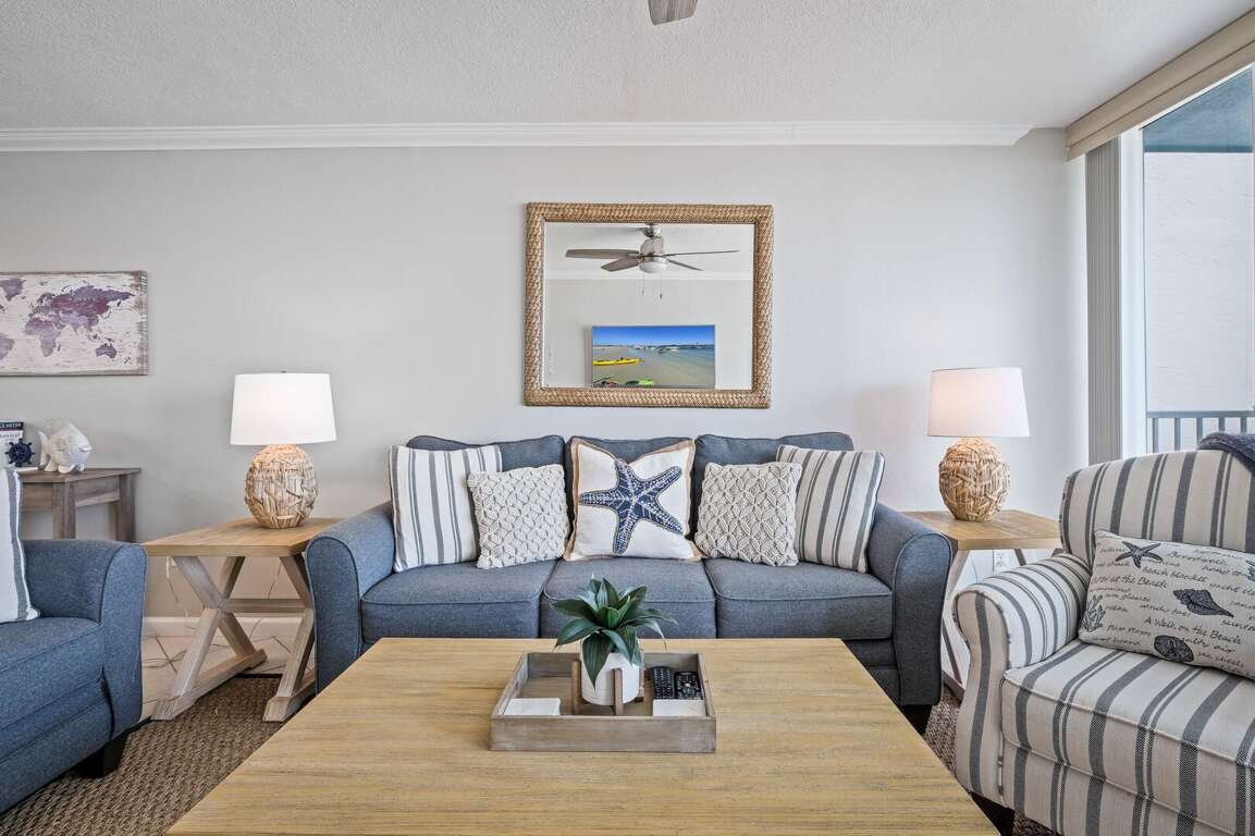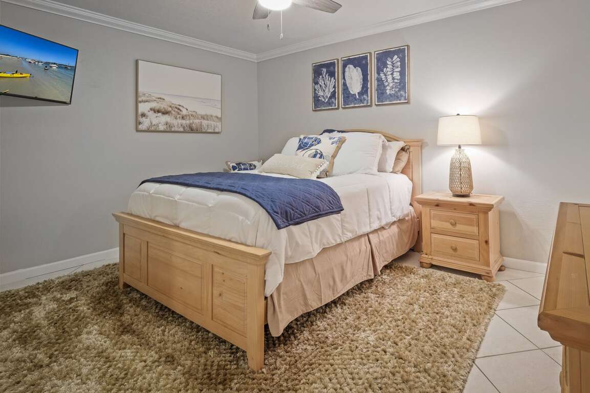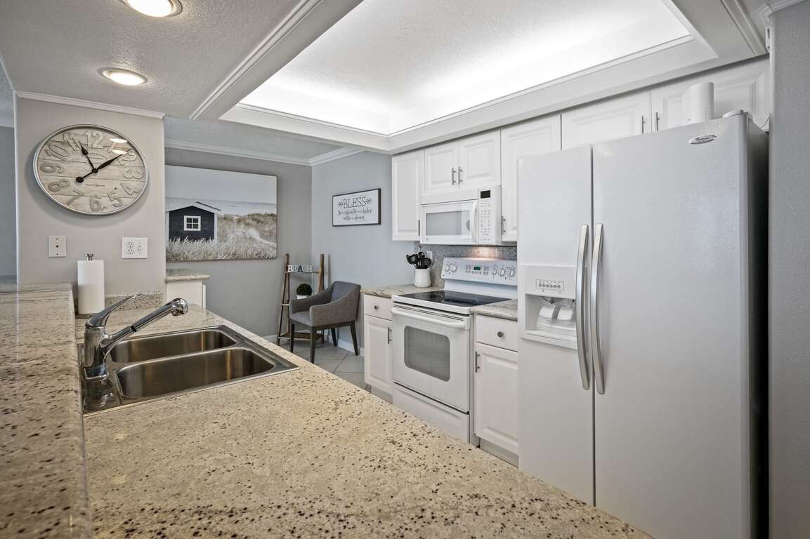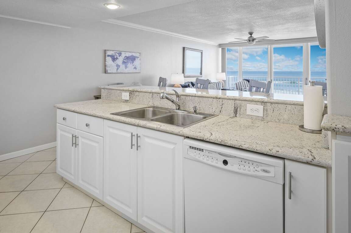 Inside, this well-appointed beachfront condo features a fully equipped kitchen, perfect for preparing meals after a day at the beach. The master bedroom boasts an ensuite bathroom, while the guest bedroom has a bathroom easily accessible just outside its door. Both bedrooms come with flat-screen TVs.<br />