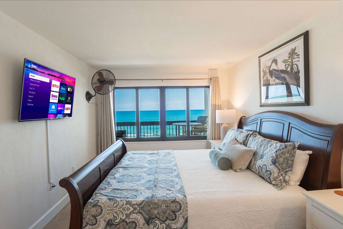 The large, 4th floor balcony offers a premium view of the Atlantic Ocean and Ormond Beach. A beverage bar and wine fridge are located just inside to help you enjoy lovely ocean breezes and romantic moonlit evenings shared on the private deck. <br />