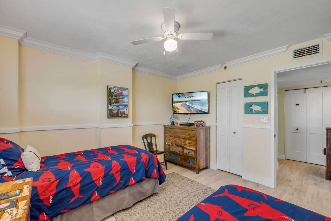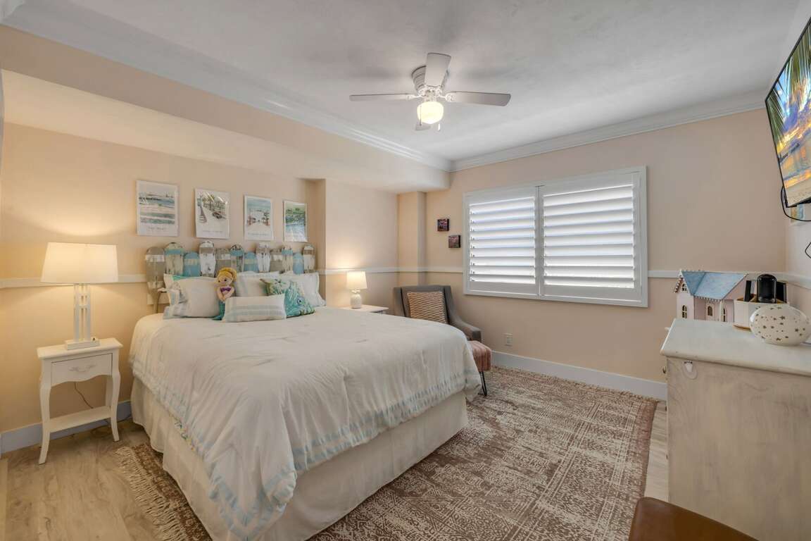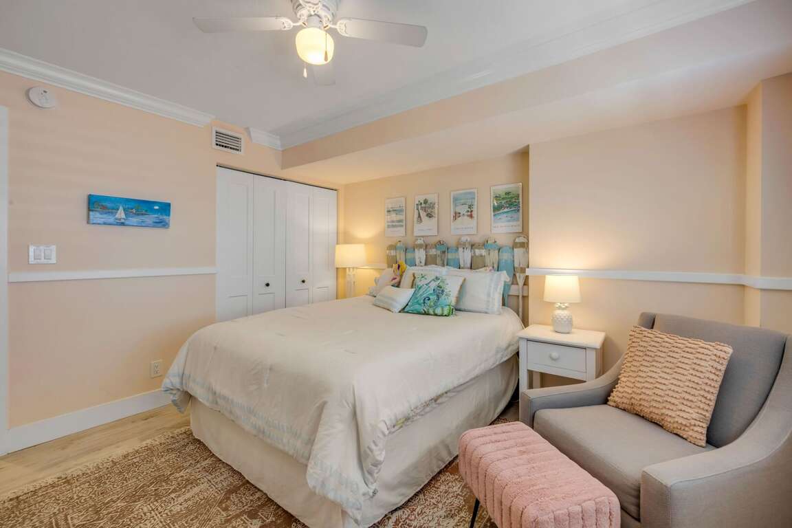 - Sleeps 6 Comfortably: King bed in the master bedroom, a queen bed in one guest room, and two twin beds in the second guest room.<br />