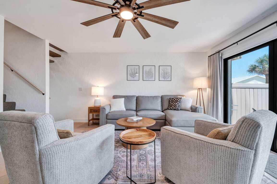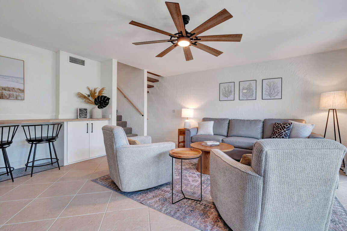 Welcome to E4 at Oceanside Village, a charming community situated on the serene No-Drive section of New Smyrna Beach. E4 is a unique multi-level townhouse, thoughtfully designed with your comfort in mind. The ground floor hosts a spacious living room and a fully-equipped kitchen, while the second floor features two cozy bedrooms.<br />
