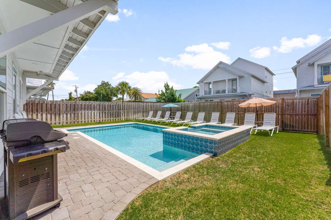 Step into your private slice of paradise at Cobian Pearl, where unforgettable memories are made under the Florida sun. Relax in the oversized heated saltwater pool with shimmering fiber optic lighting, or soak your cares away in the cascading waterfall hot tub. The spacious backyard is perfect for lounging, dining al fresco, or capturing picture-perfect family moments.
