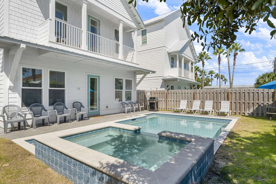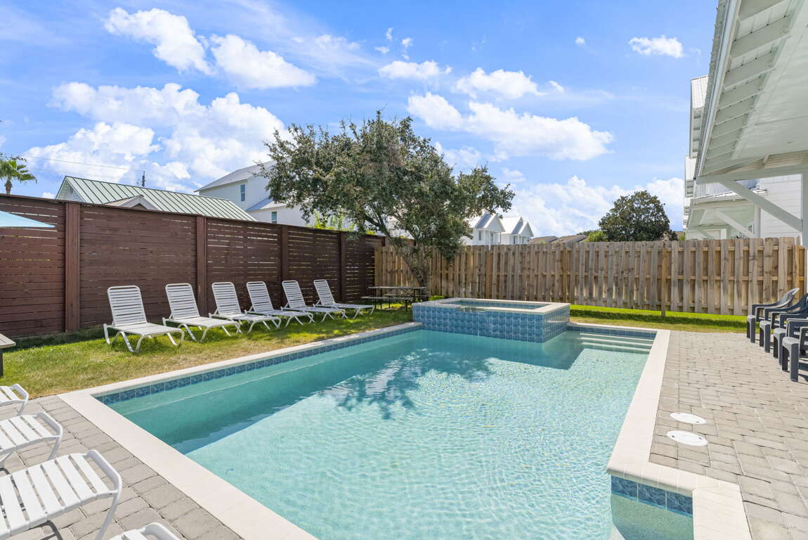 Welcome to Cobian Cove, your home away from home in sunny Florida. Enjoy a heated saltwater pool with fiber-optic lighting, a relaxing waterfall spa, and a spacious backyard perfect for family time. Just two blocks from the beach—with a complimentary golf cart included—you’ll be close to Pompano Joe’s, Destin Commons, and Baytowne Wharf. Whether for a reunion, celebration, or beach getaway, Cobian Cove has everything you need for a comfortable, memorable stay.