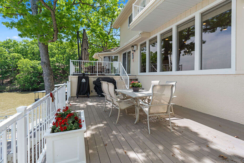 Step outside and embrace lake life! Two lakeside decks and a martini deck give you plenty of space to relax, soak up the sun, and enjoy outdoor dining. Fire up the grill, pizza oven, or smoker for fun family meals with a view. The private dock with a boat slip sits in deep water year round, making it perfect for all the lake activities.