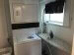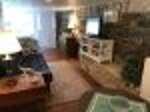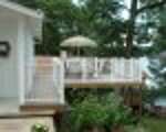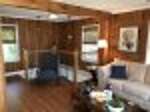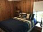 The main level features a cozy living room with flat-screen TV and full-size sleeper sofa, a fully equipped kitchen and dining area, and two bedrooms (one with a queen bed and the other with a twin and twin trundle). A full bathroom, concrete porch with a swing, and a spacious deck with outdoor furniture round out this floor. Downstairs, you'll find two more beds (queen and full), a full-sized futon, a TV and game table, another full bath with shower, plus a convenient laundry room. A private deck opens directly from the living room, complete with patio seating and a grill for lakeside meals.