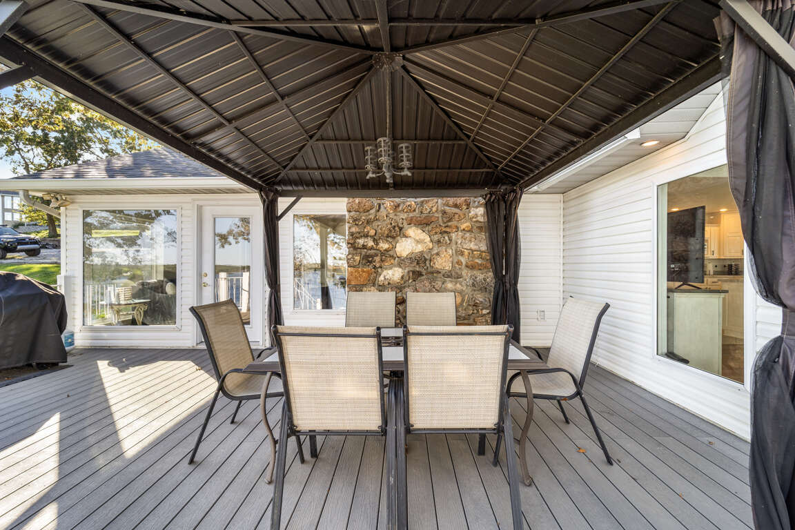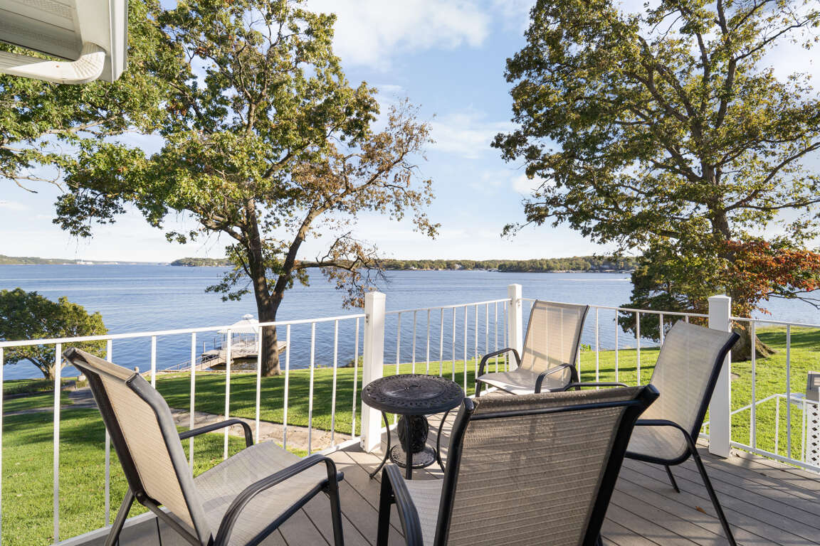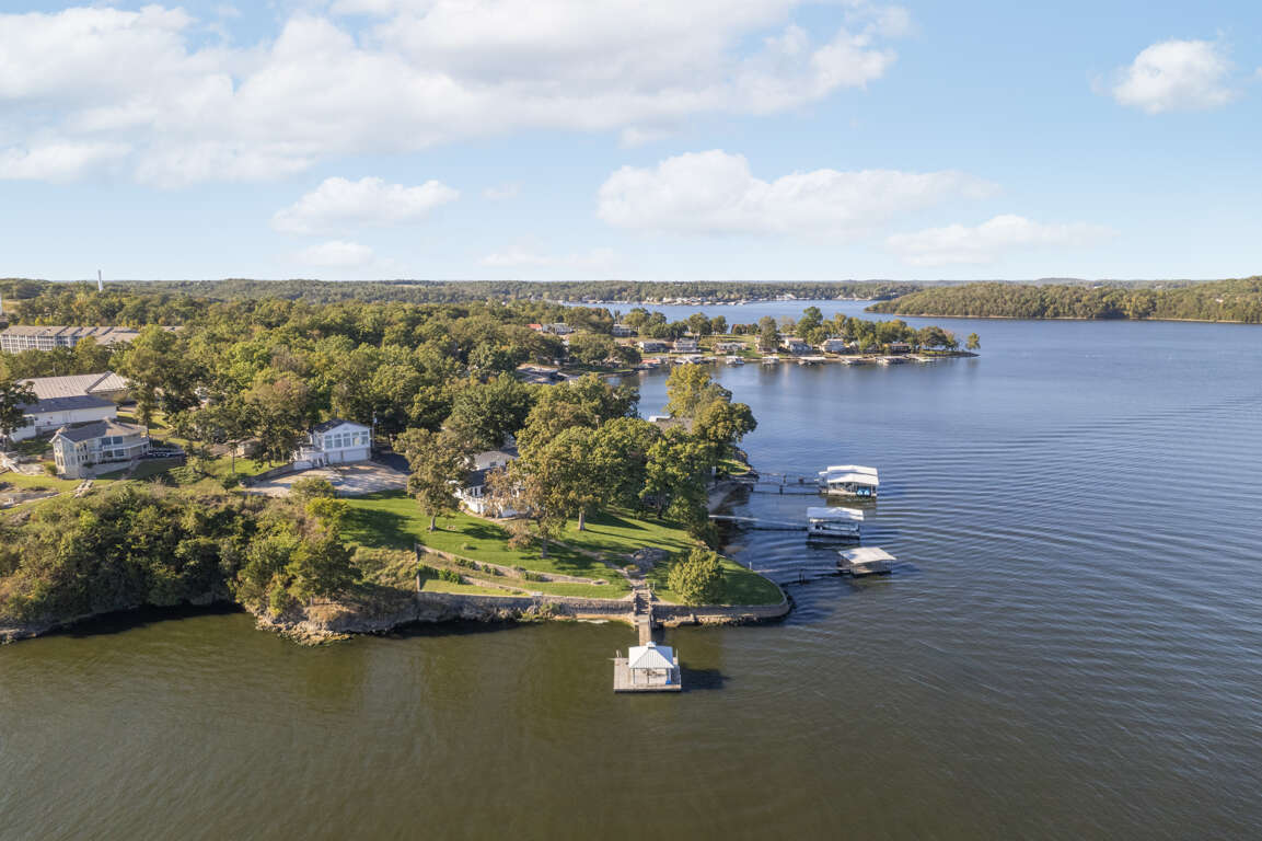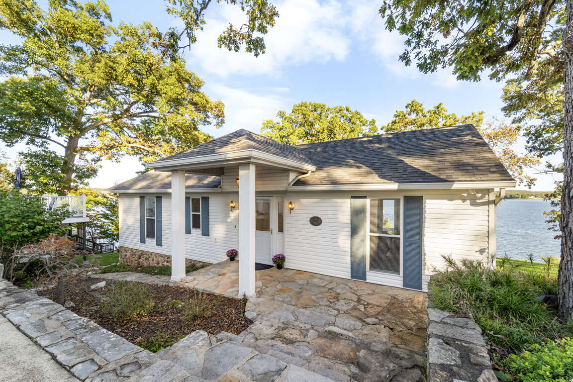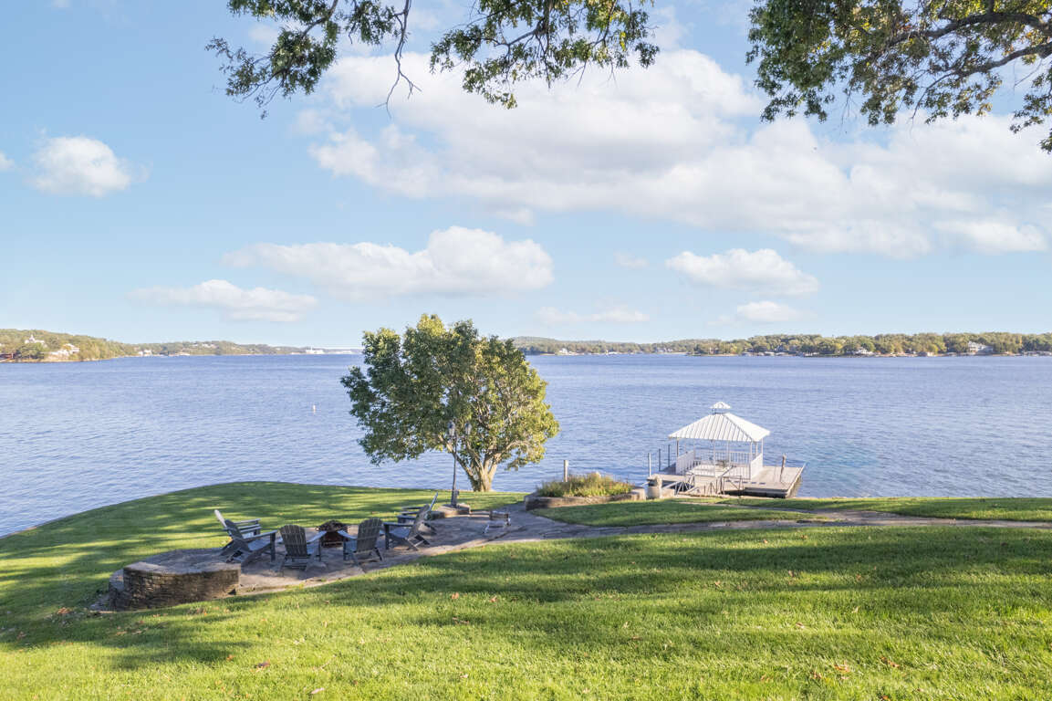 Step outside to enjoy the stunning lake views from the large deck, complete with patio furniture, and a gas grill. Down by the water's edge, there's a large rock martini patio (shared with Casablanca guests) with shade trees, patio furniture, and room to relax and watch the boats pass by. Guests also have access to a shared covered gazebo dock with a swim ladder, sun area, and additional seating. The water off the dock is deep, making it perfect for swimming and fishing. While this home does not include a private boat slip, slips are available to rent at nearby Mystic Marina. This quiet-side retreat offers breathtaking panoramic views of the lake, excellent fishing, and unforgettable sunrises. Located just 25-30 minutes from the Bagnell Dam, Lake Ozark and Osage Beach via the community bridge, it's close enough to the action while still providing the peace and relaxation of a private escape.